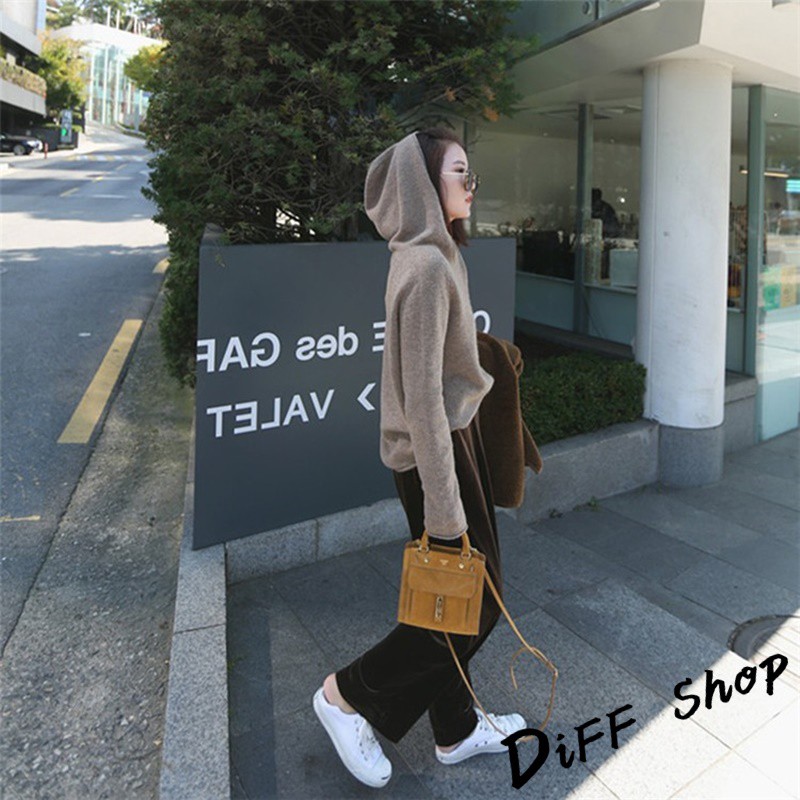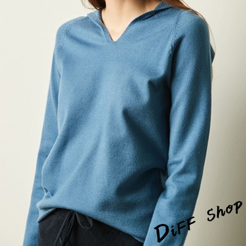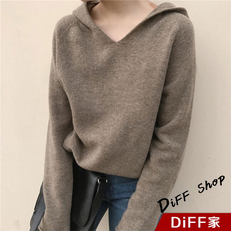 【DIFF】韓版寬鬆百搭連帽針織上衣 長袖上衣 女裝 衣服 寬鬆上衣 顯瘦上衣 素色 冬裝 長袖t恤 素T【S110】