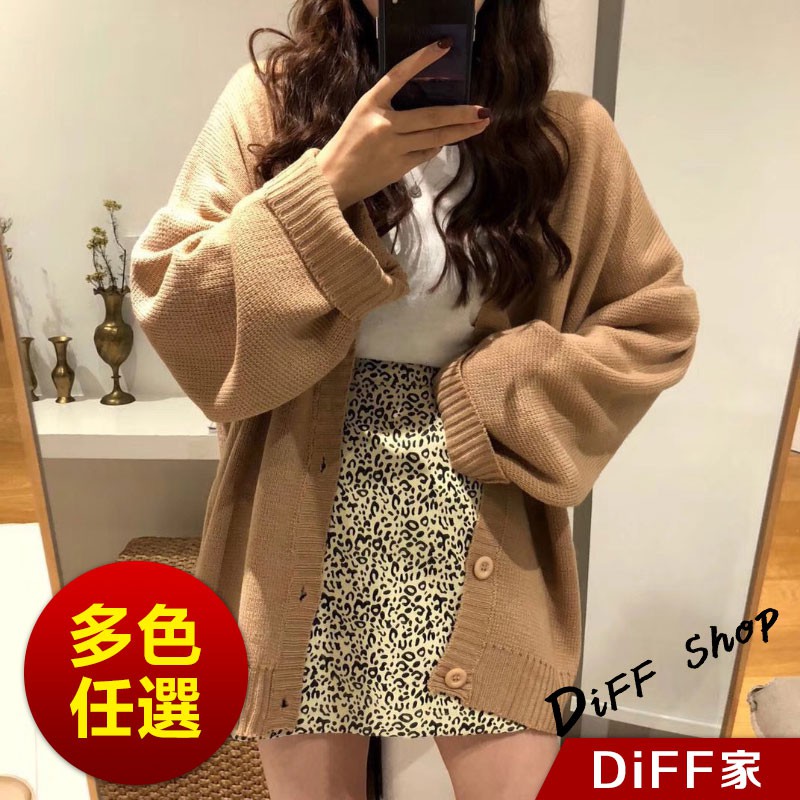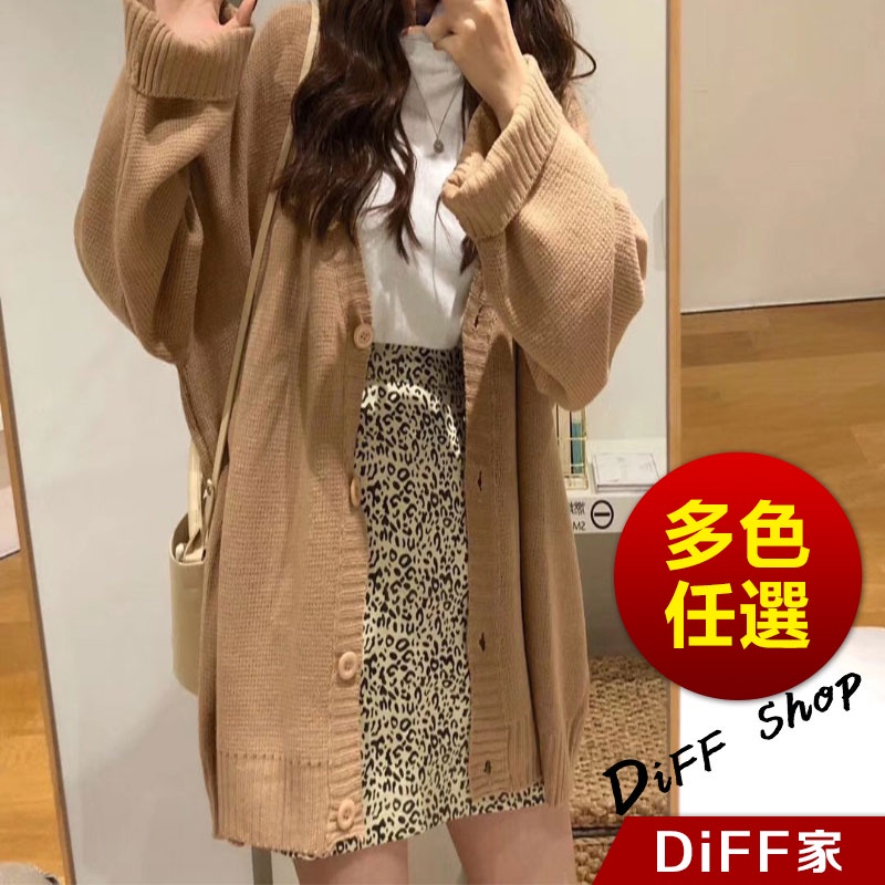 【DIFF】韓版寬鬆百搭復古色系針織外套 上衣 女裝 衣服 外套 長版外套 針織外套 【J148】