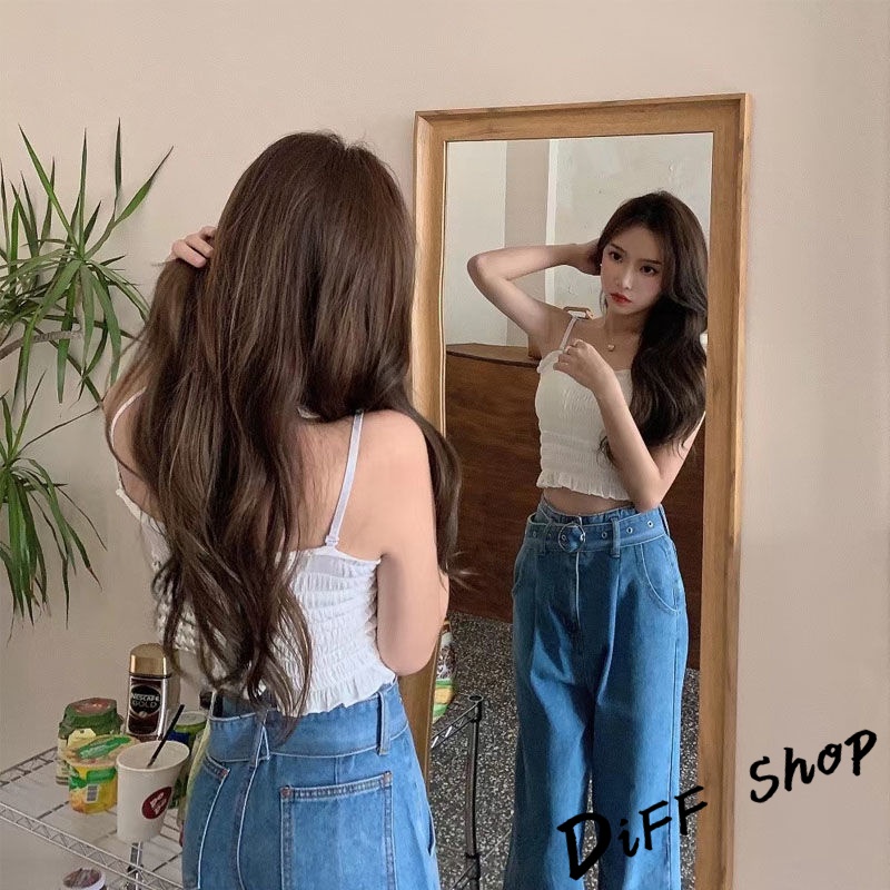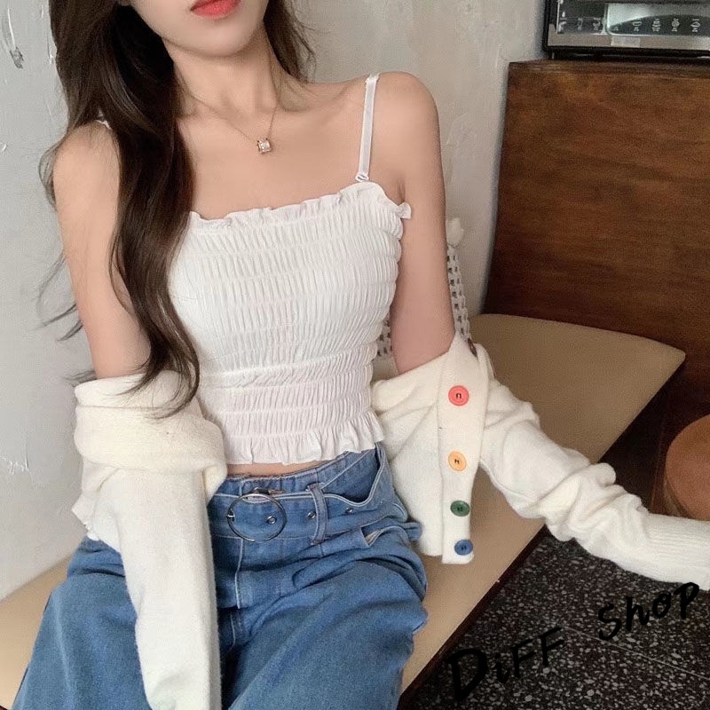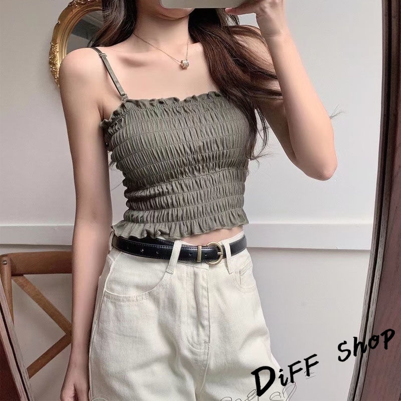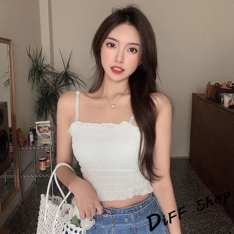 【DIFF】韓版氣質小清新平口短版背心 免穿內衣帶胸墊 上衣 小可愛 女裝 背心女 衣服 冰絲背心 短版上衣【V103】