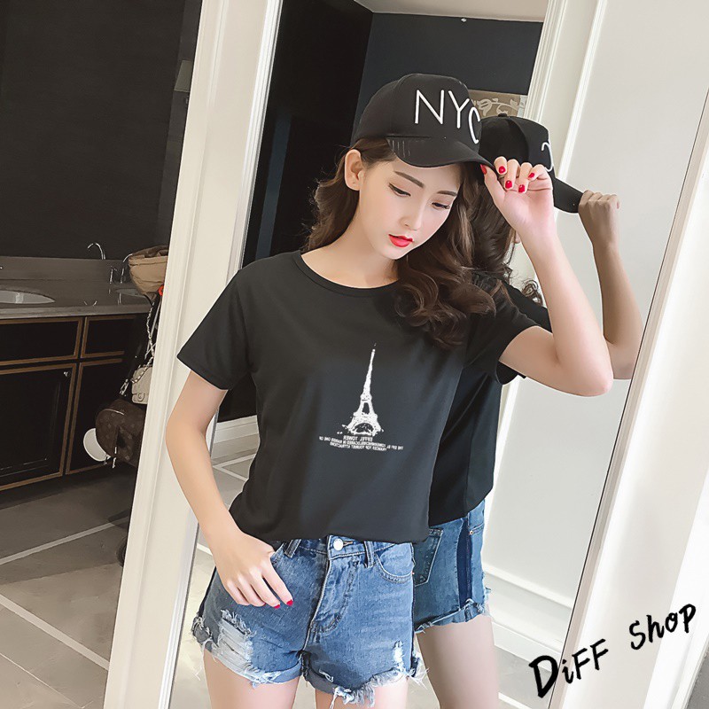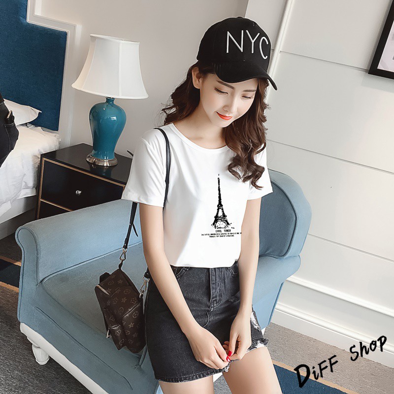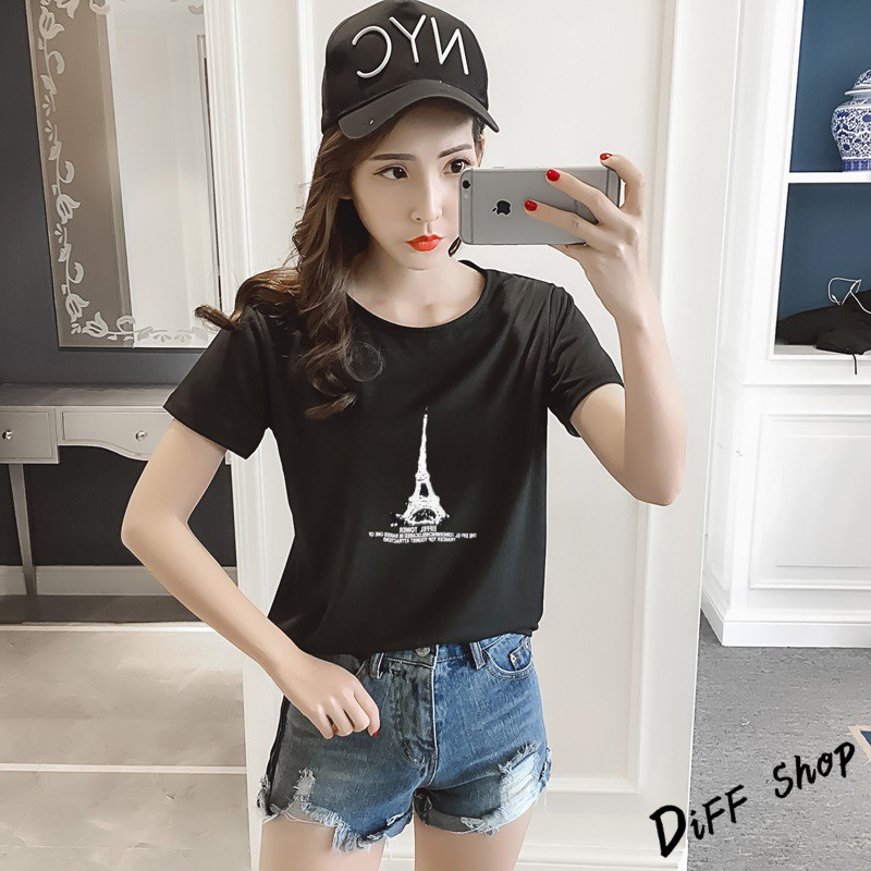 【DIFF】新款韓版鐵塔印花圓領寬鬆短袖T恤 上衣 短袖上衣 女裝 衣服 素T【T146】