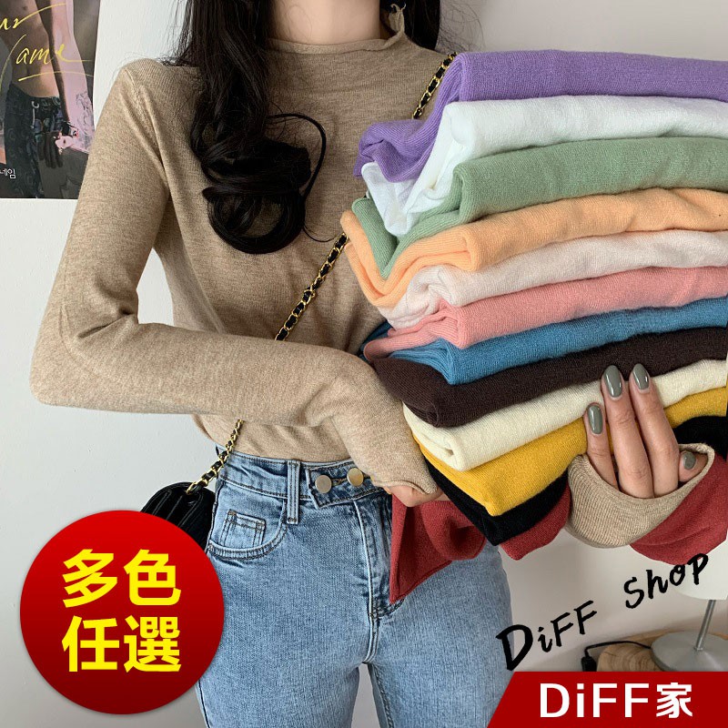 【DIFF】韓版半高領針織上衣 長袖上衣 女裝 衣服 寬鬆上衣 顯瘦上衣 素色 冬裝 長袖t恤 針織上衣 【W198】
