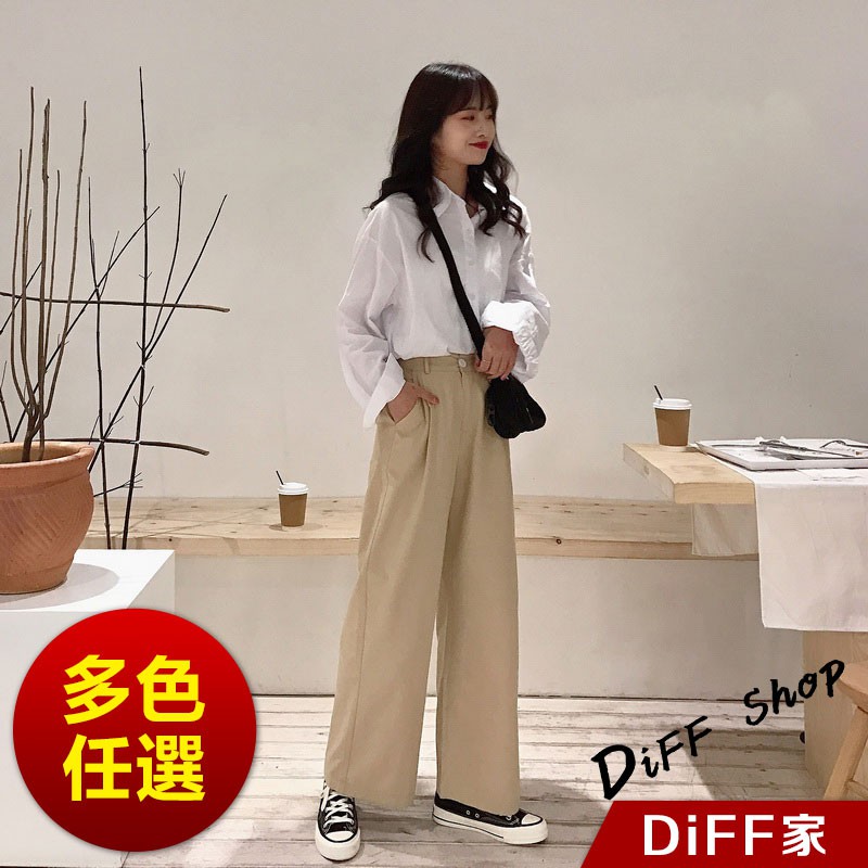 【DIFF】韓版百搭寬鬆喇叭休閒褲 寬褲 喇叭褲 褲子 長褲 休閒褲 女裝 工裝褲【P105】