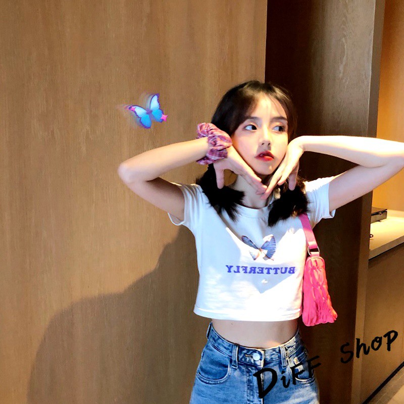 【DIFF】韓版白色蝴蝶半袖短版短袖上衣 短袖t恤 女裝 顯瘦上衣 衣服 寬鬆上衣 素T【T275】