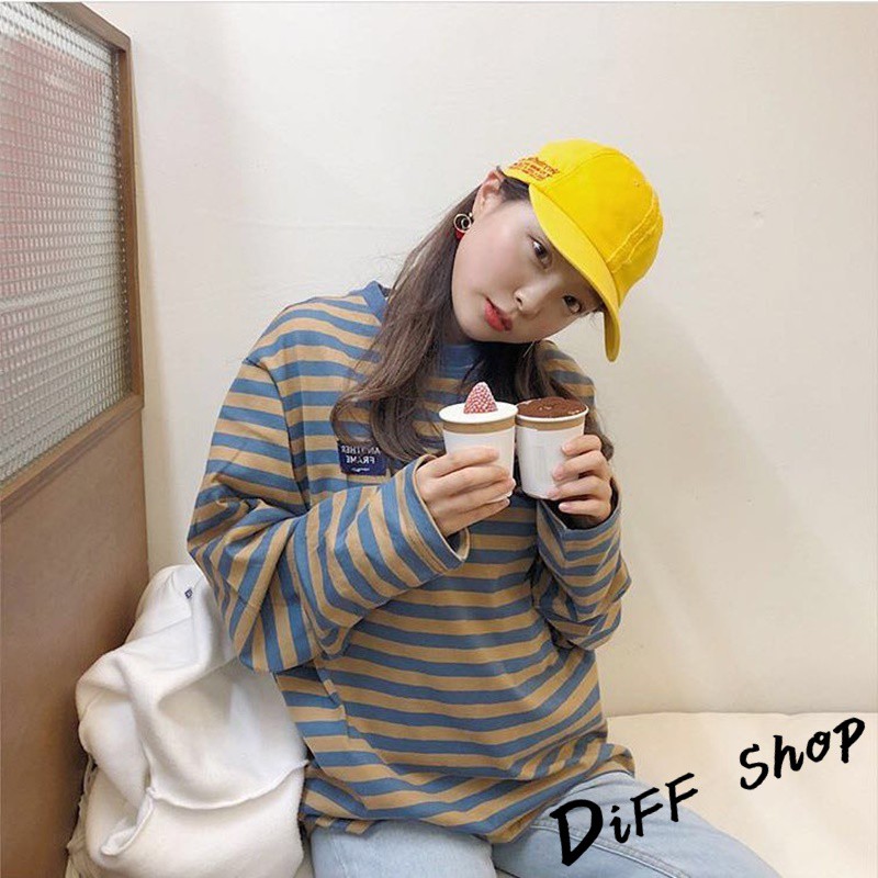 【DIFF】韓版秋裝百搭寬鬆條紋長袖T恤 長袖上衣 長袖t恤 女裝 衣服 寬鬆上衣 素T 顯瘦上衣【W99】