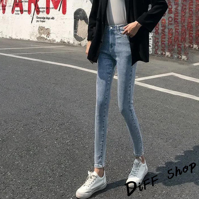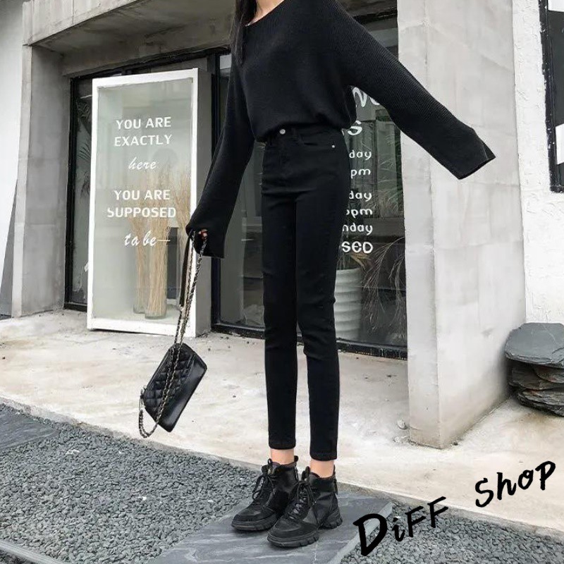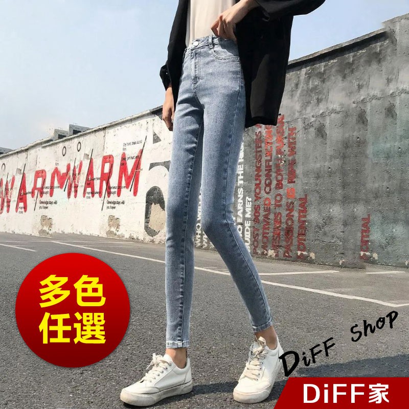 【DIFF】韓版高腰彈性顯瘦九分牛仔褲 小腳褲 黑褲 褲子 長褲 休閒褲 牛仔長褲 顯瘦褲【P48】