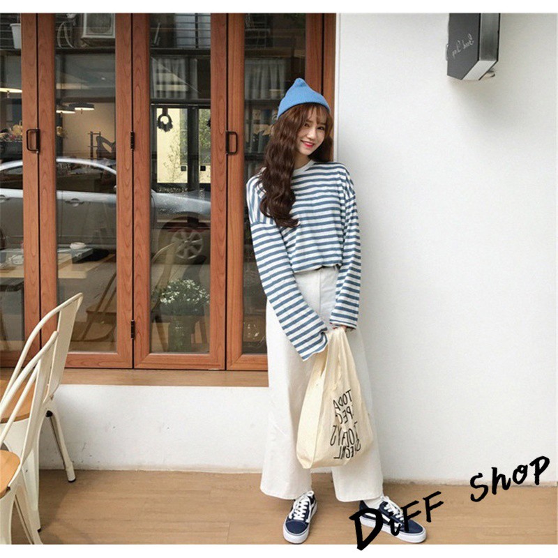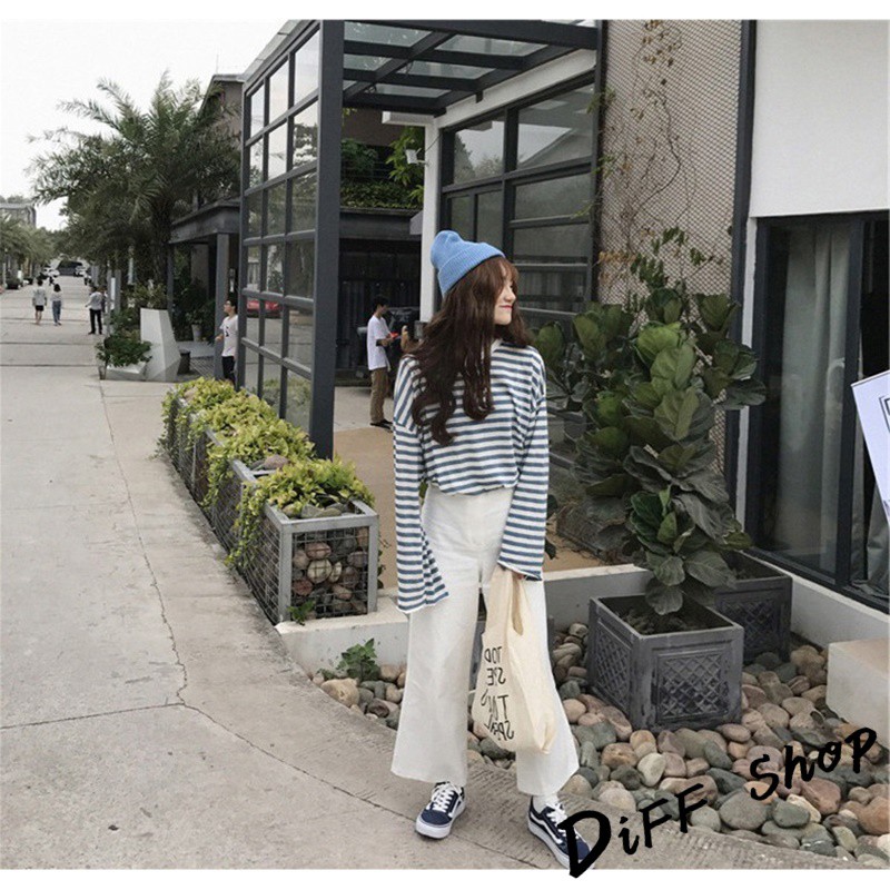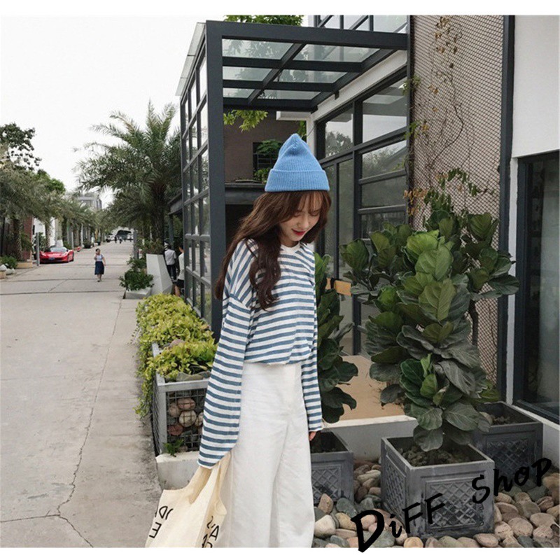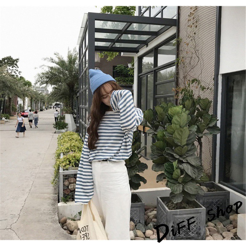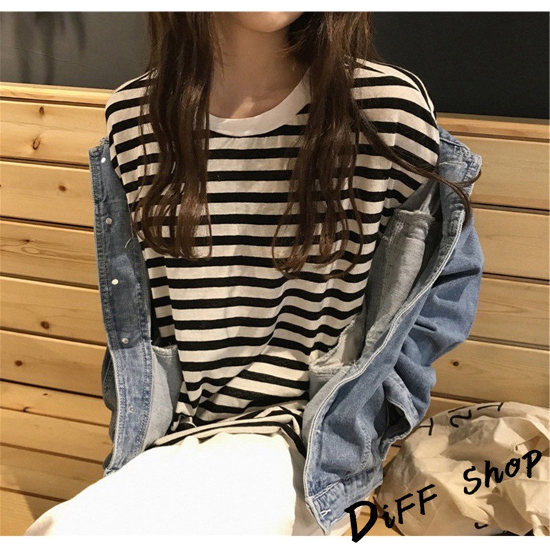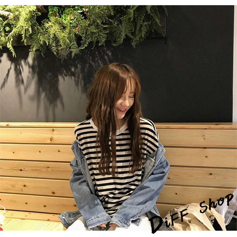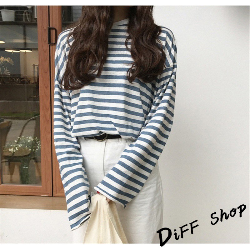 【DIFF】韓版寬鬆條紋百搭長袖上衣 長袖t恤 女裝 衣服 寬鬆上衣 素T 素色 顯瘦上衣【W102】