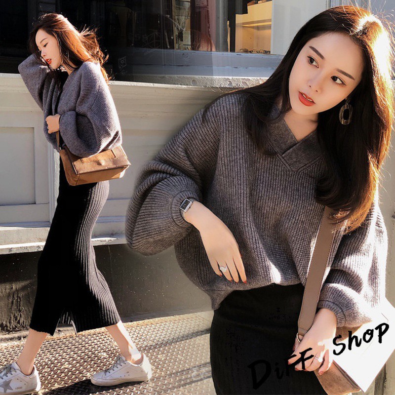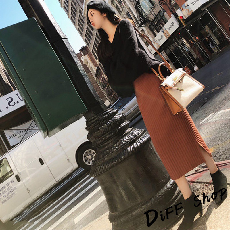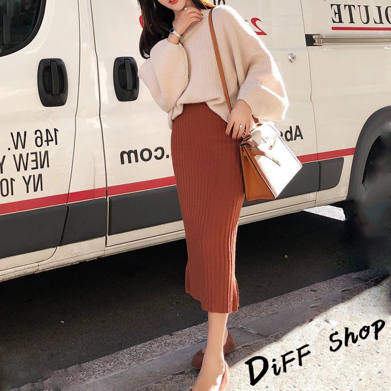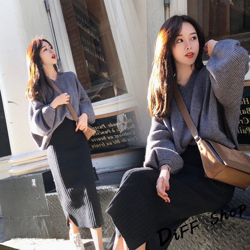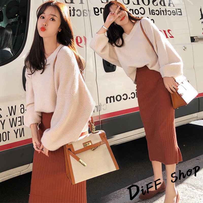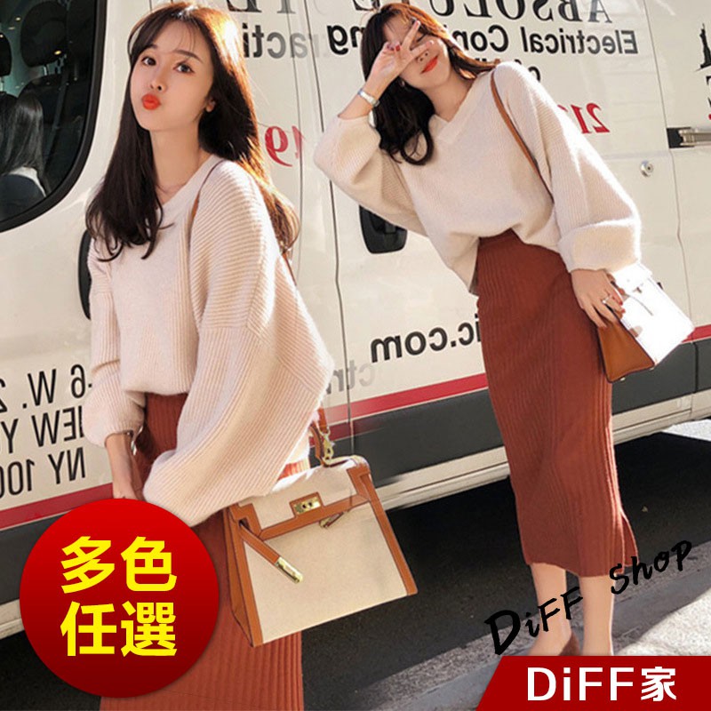 【DIFF】韓版氣質針織毛衣+針織長裙 兩件套裝 長袖上衣 女裝 衣服 寬鬆上衣 顯瘦上衣 褲子 裙子P221【S85】