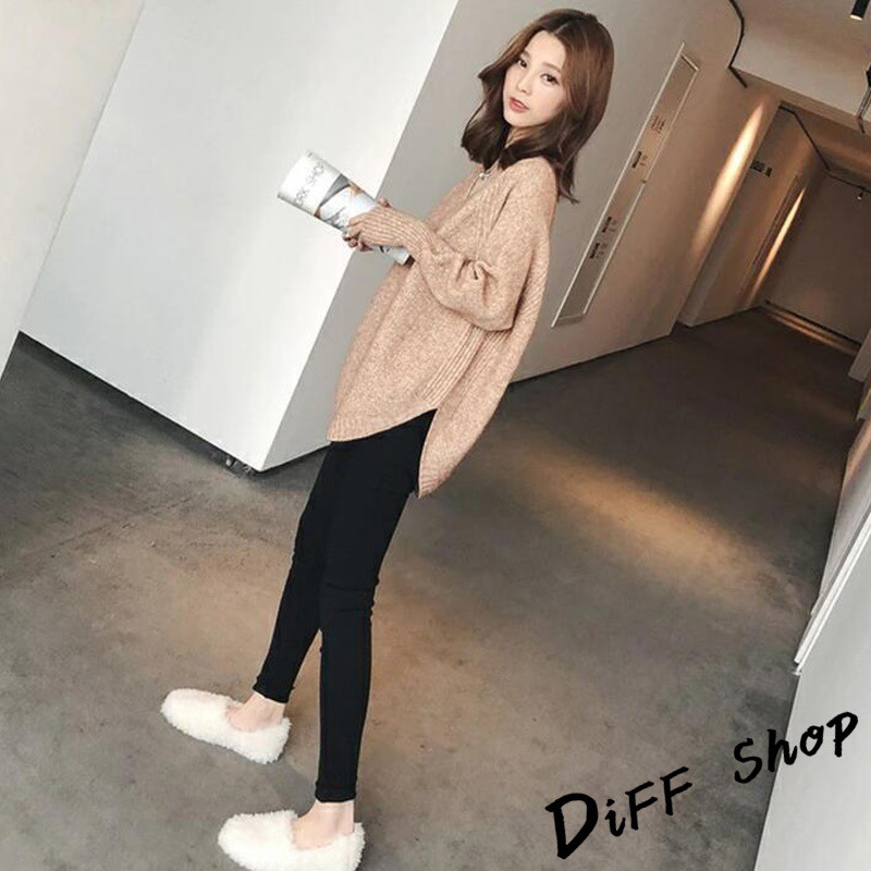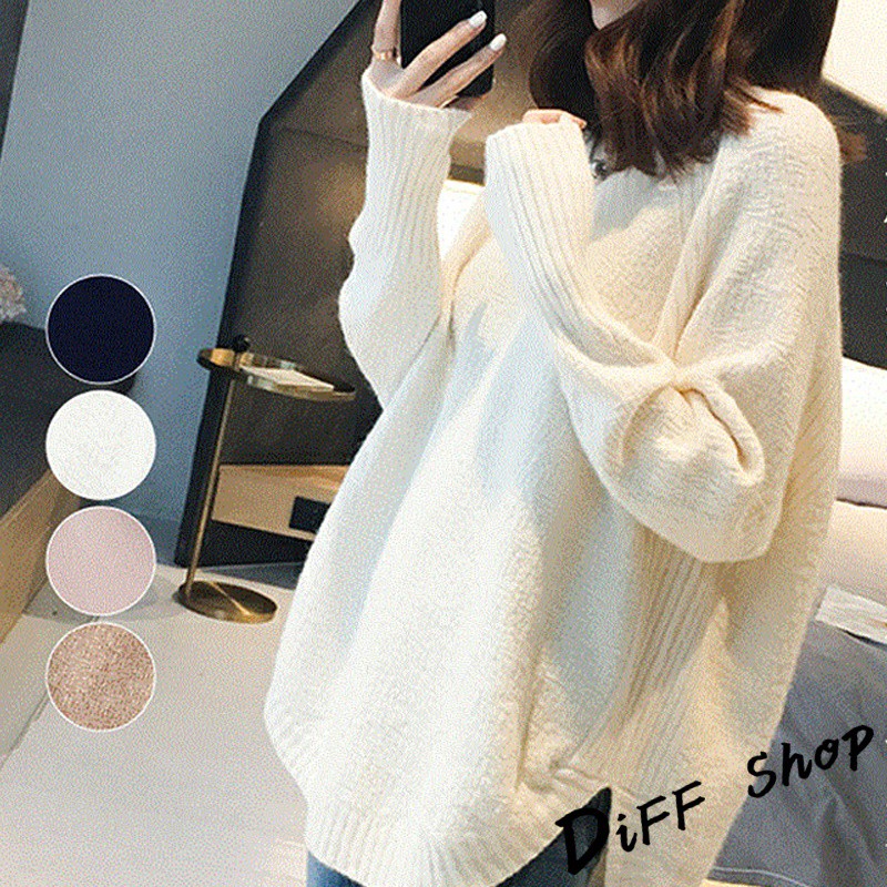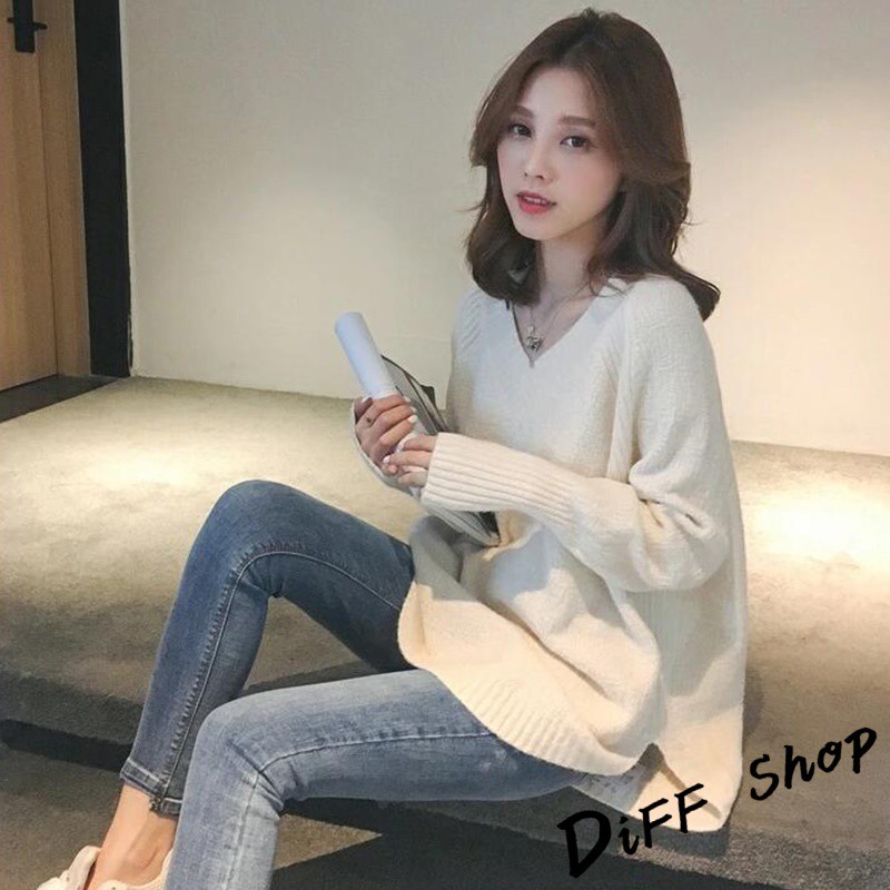 【DIFF】韓版慵懶風寬鬆百搭V領針織上衣 毛衣 長袖上衣 女裝 衣服 寬鬆上衣 顯瘦上衣 素色 冬裝【S113】