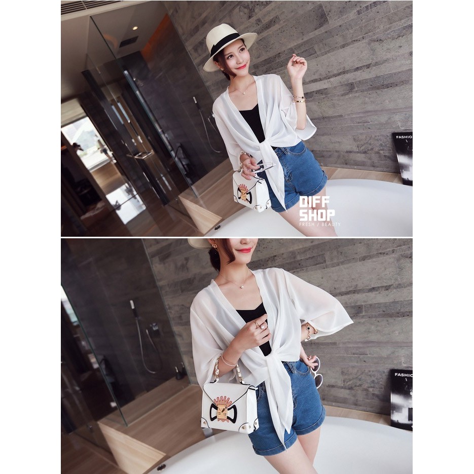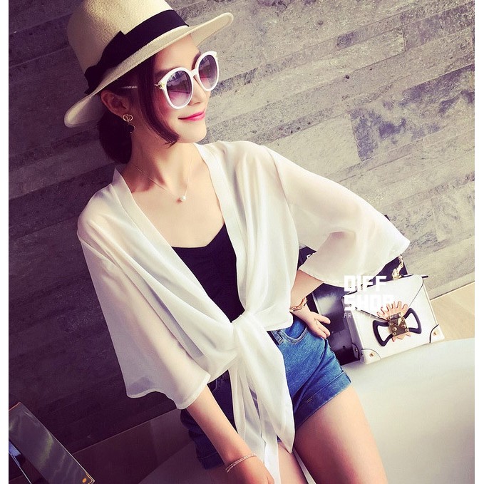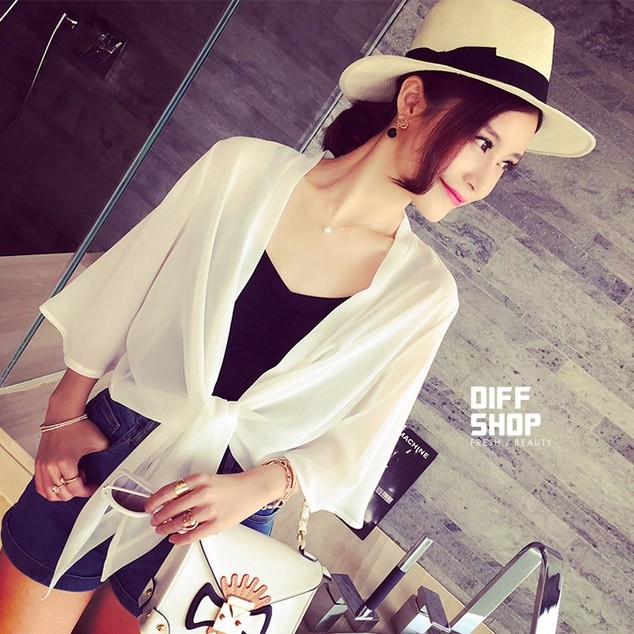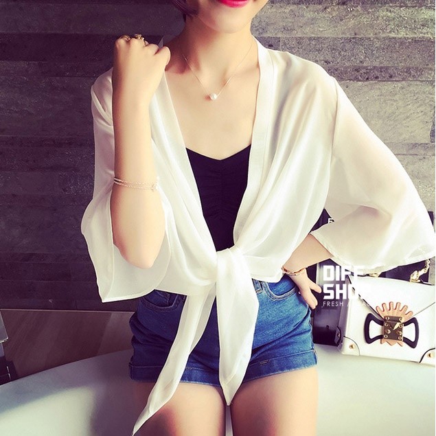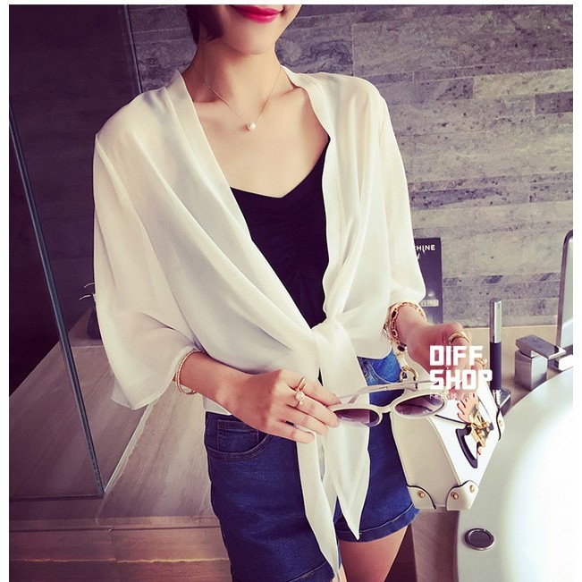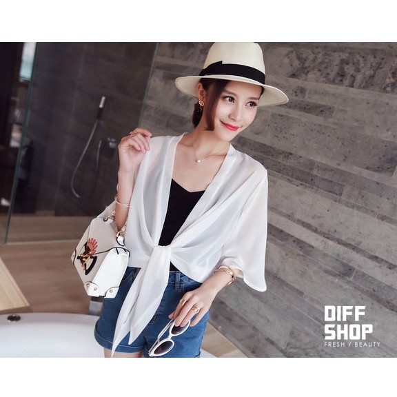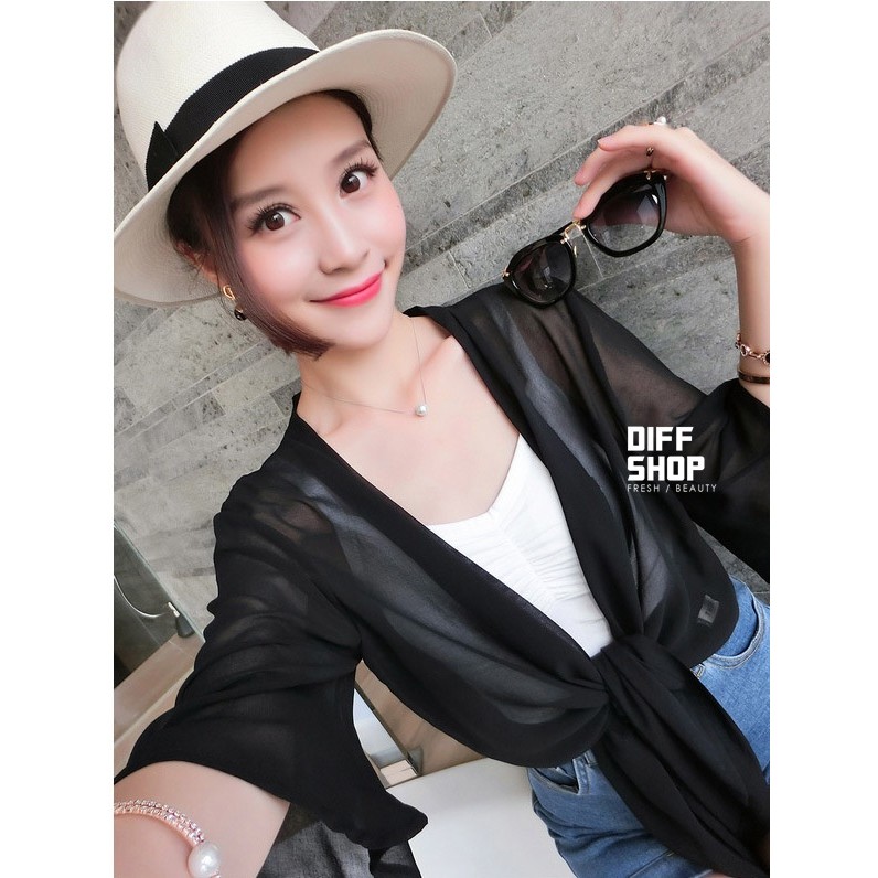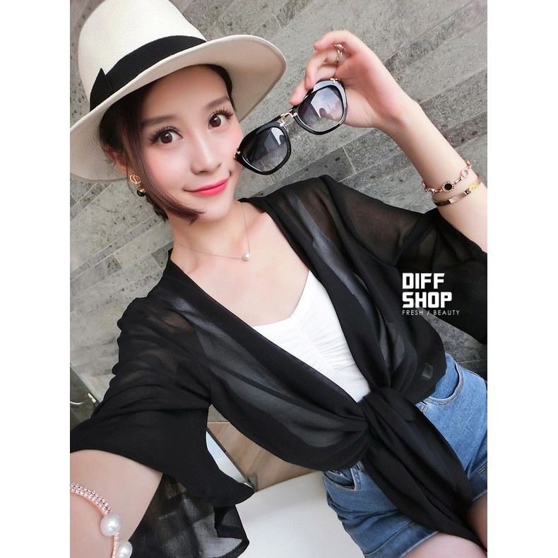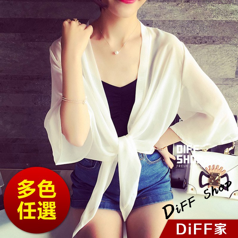 【DIFF】雪紡小披肩外套 短款超薄 百搭沙灘防曬外套 雪紡外套 薄外套【J17】