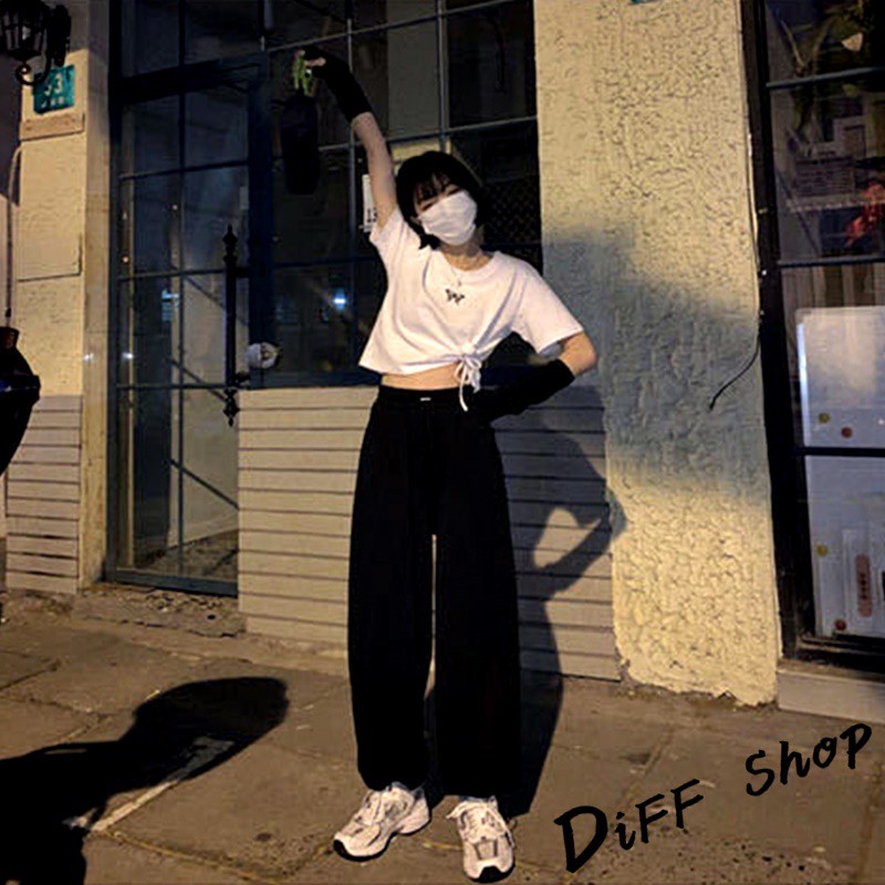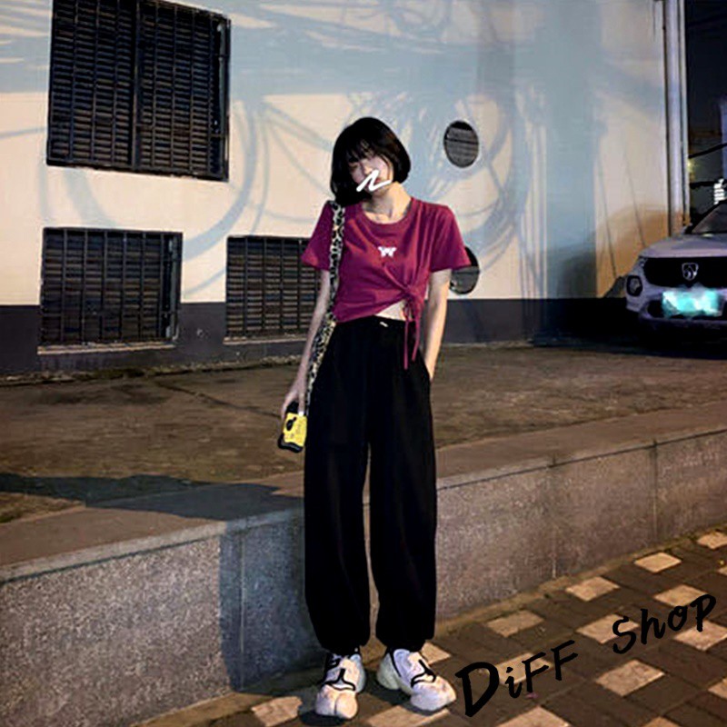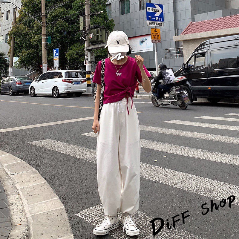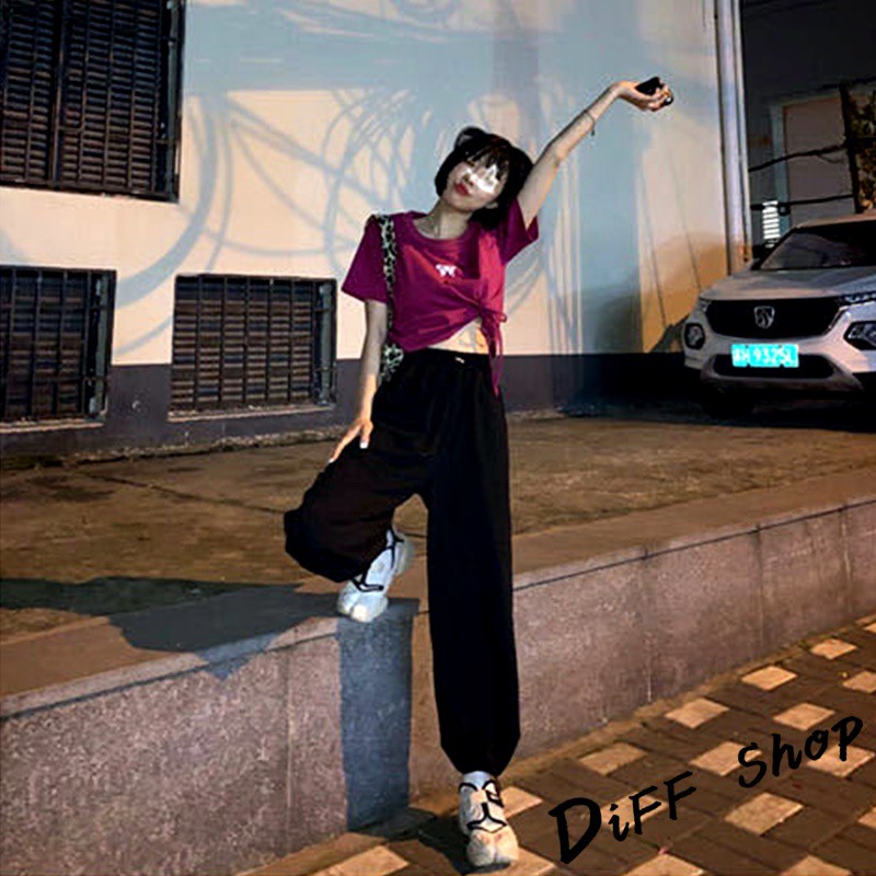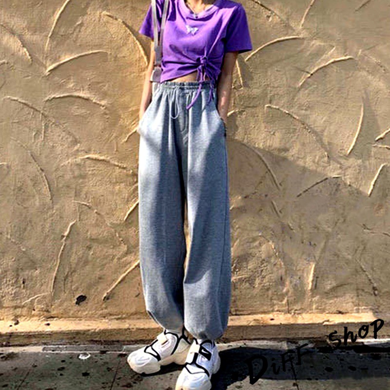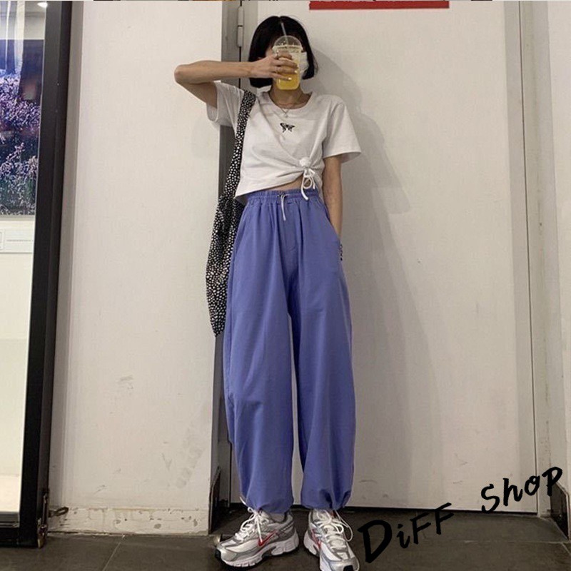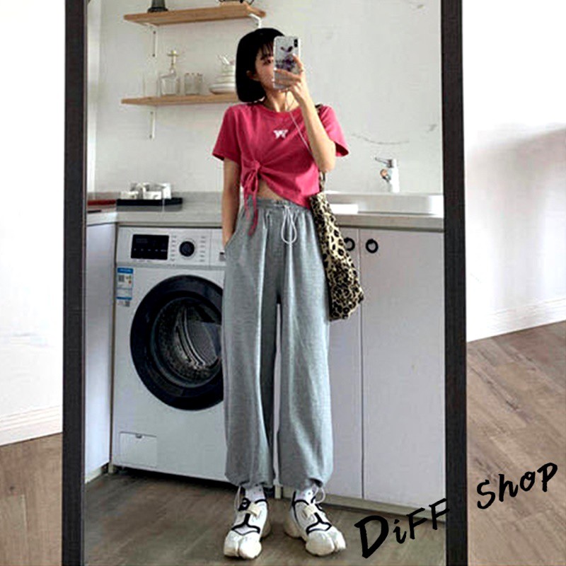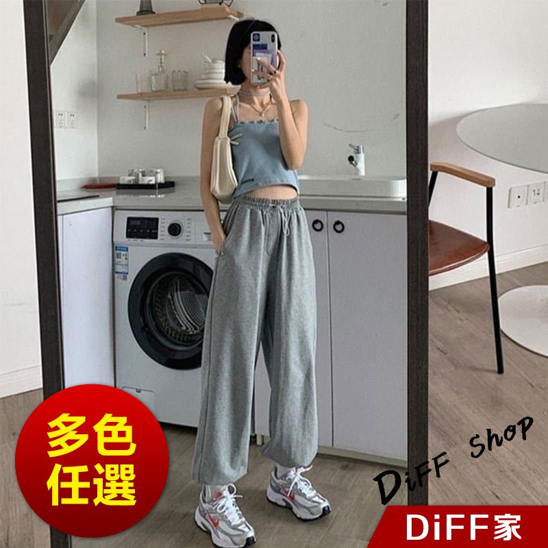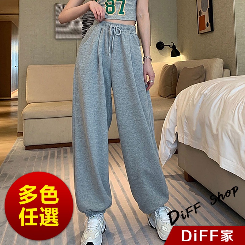 【DIFF】韓版高腰顯瘦寬鬆薄款束口運動長褲 寬褲 褲子 長褲 休閒褲 女裝 工裝褲【P126】