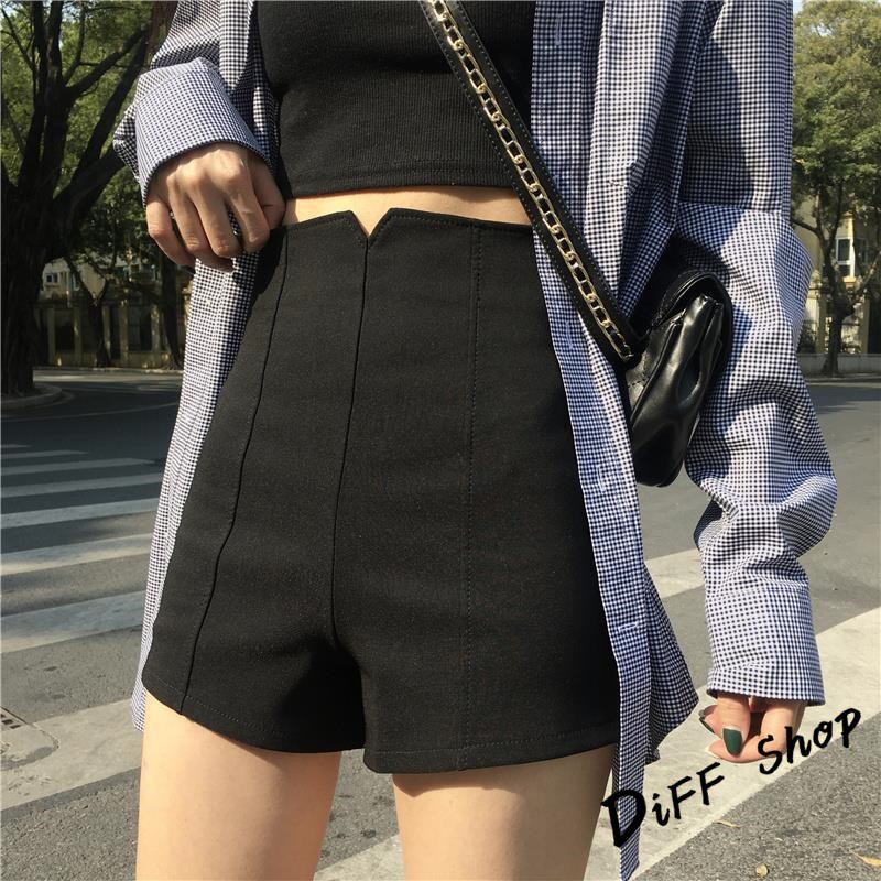 【DIFF】韓版小V性感黑色貼身高腰A字短褲 休閒褲 短褲 褲子 A字褲 女裝 休閒短褲 西裝褲 高腰短褲【P121】