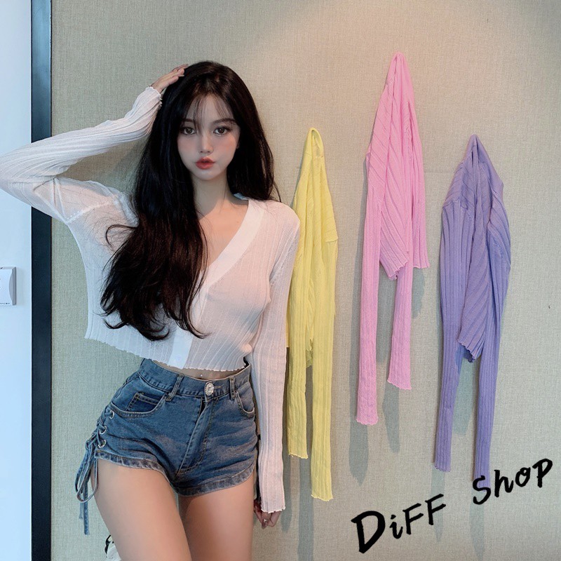 【DIFF】韓版夏季V領冰絲防曬薄外套 針織外套 百搭外套 上衣 女裝 衣服 外套 罩衫 防曬外套【J129】