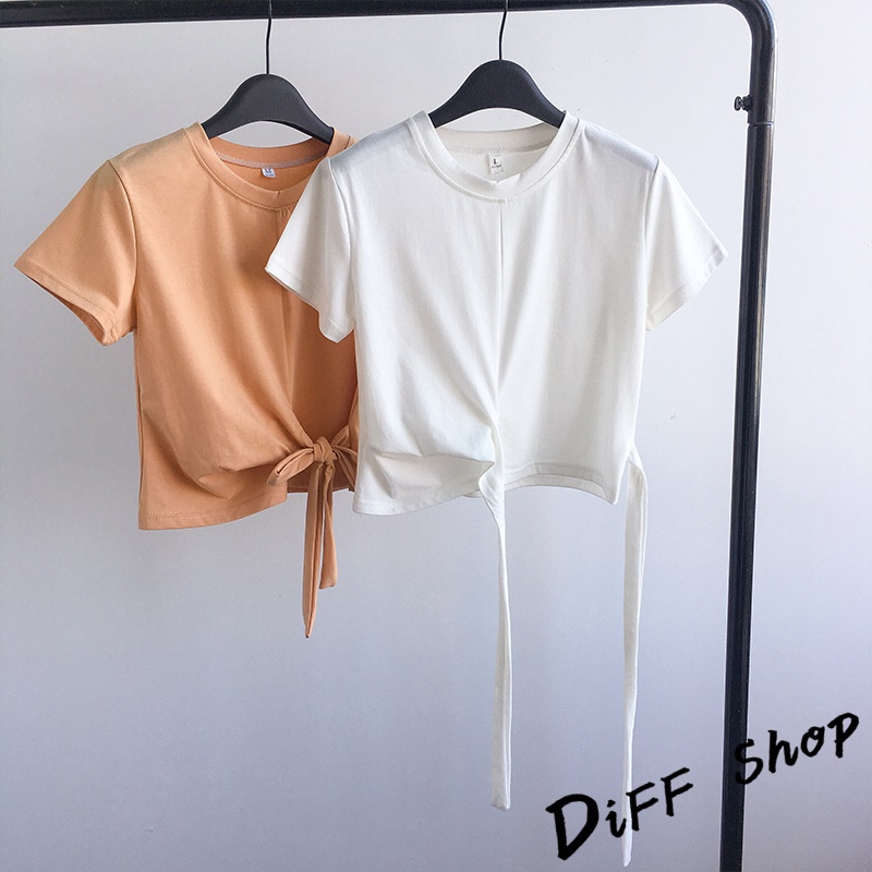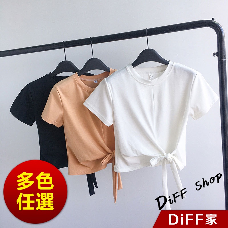 【DIFF】韓板綁帶修身小心機短版上衣 短袖上衣 短袖t恤 女裝 顯瘦上衣 衣服 寬鬆上衣 素T 短板上衣【T340】