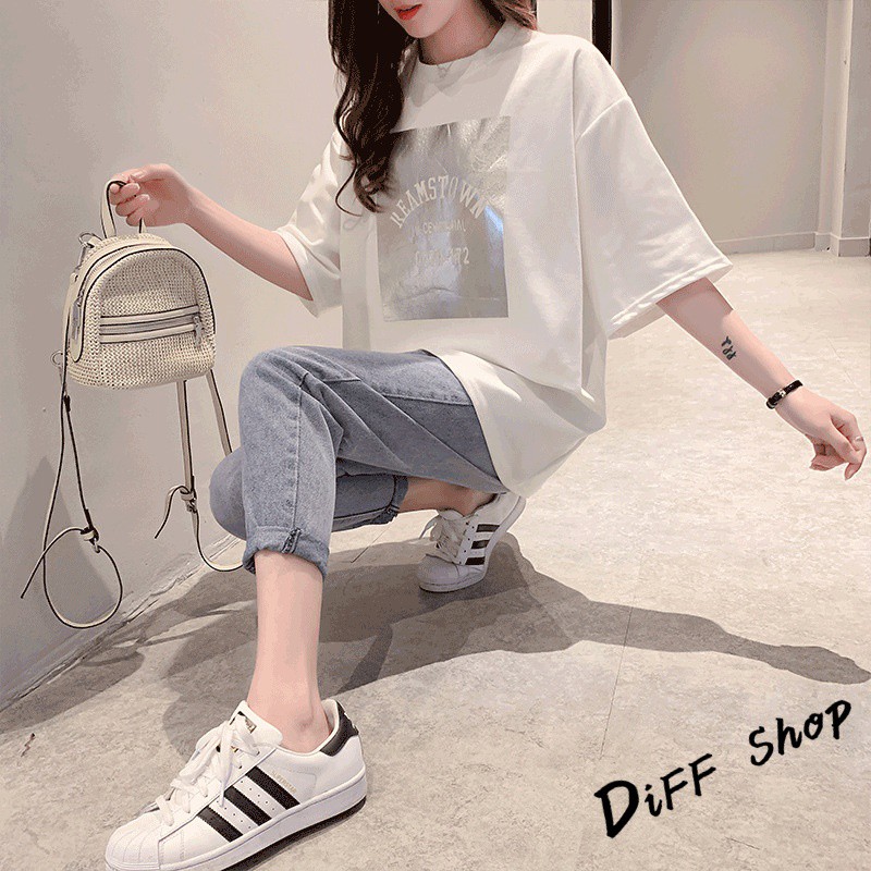【DIFF】韓版寬鬆字母短袖連衣裙 短袖上衣 短袖t恤 女裝 顯瘦上衣 衣服 寬鬆上衣 素T【T245】