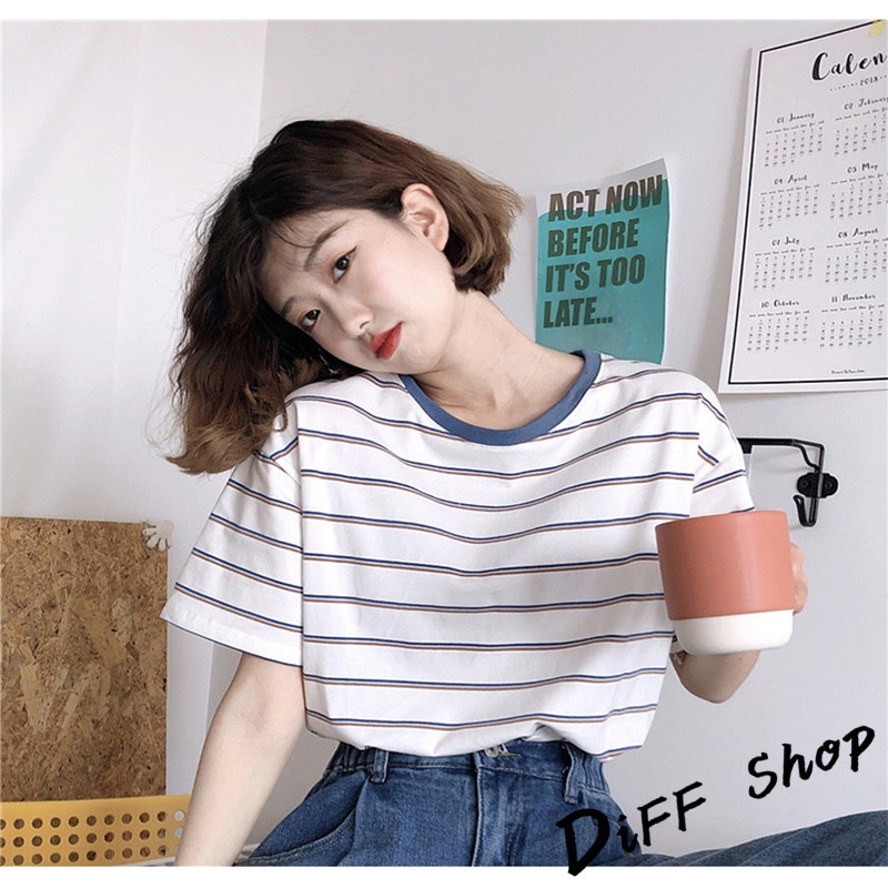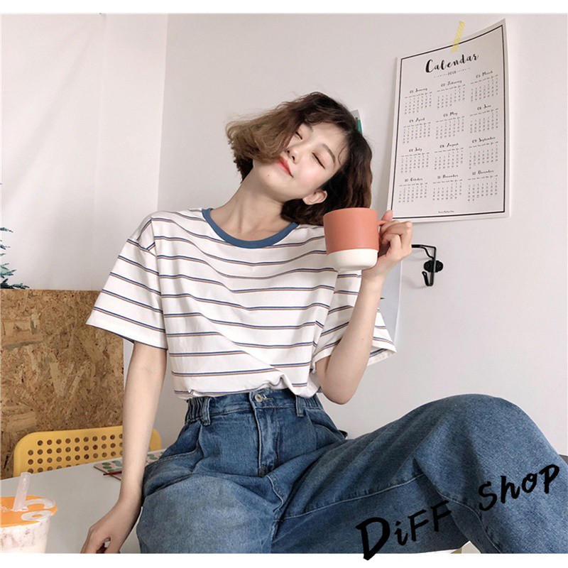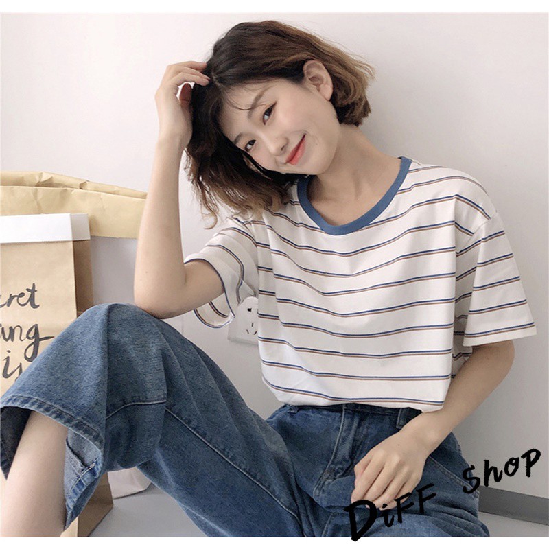 【DIFF】春季韓版寬鬆圓領條紋短袖上衣 短袖t恤 女裝 顯瘦上衣 衣服 寬鬆上衣【T234】