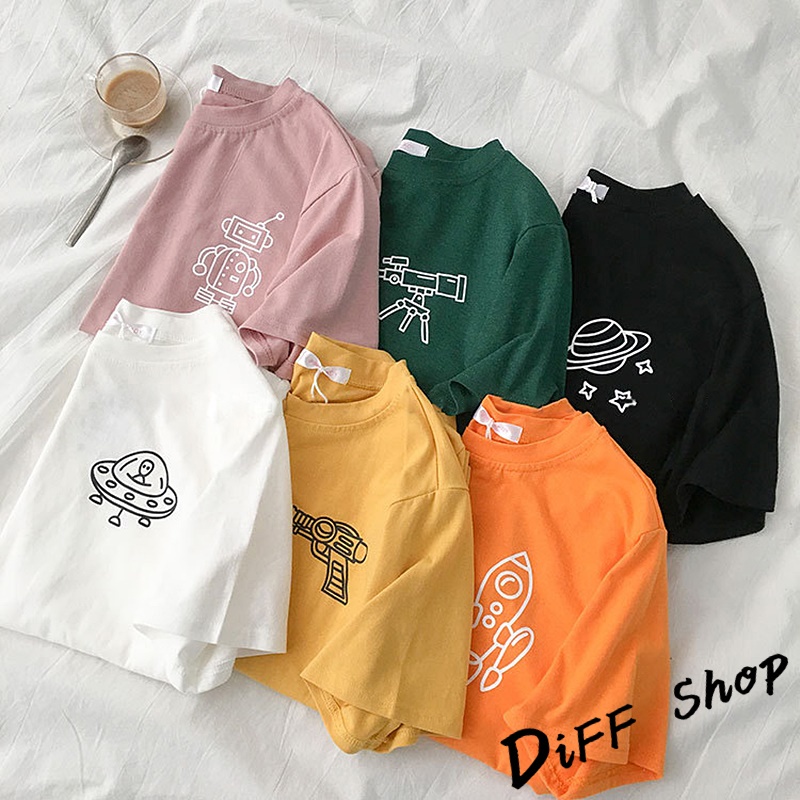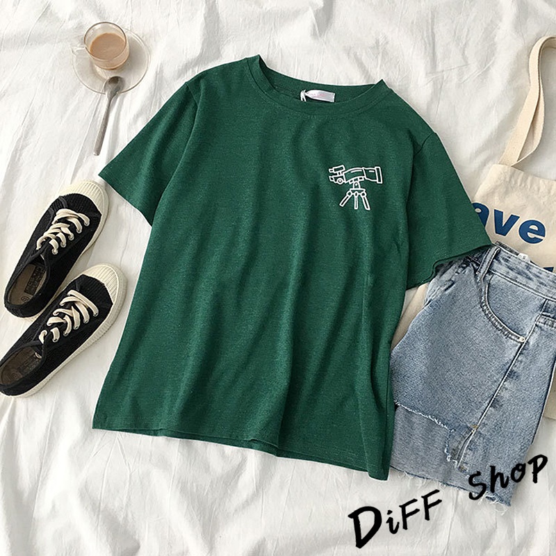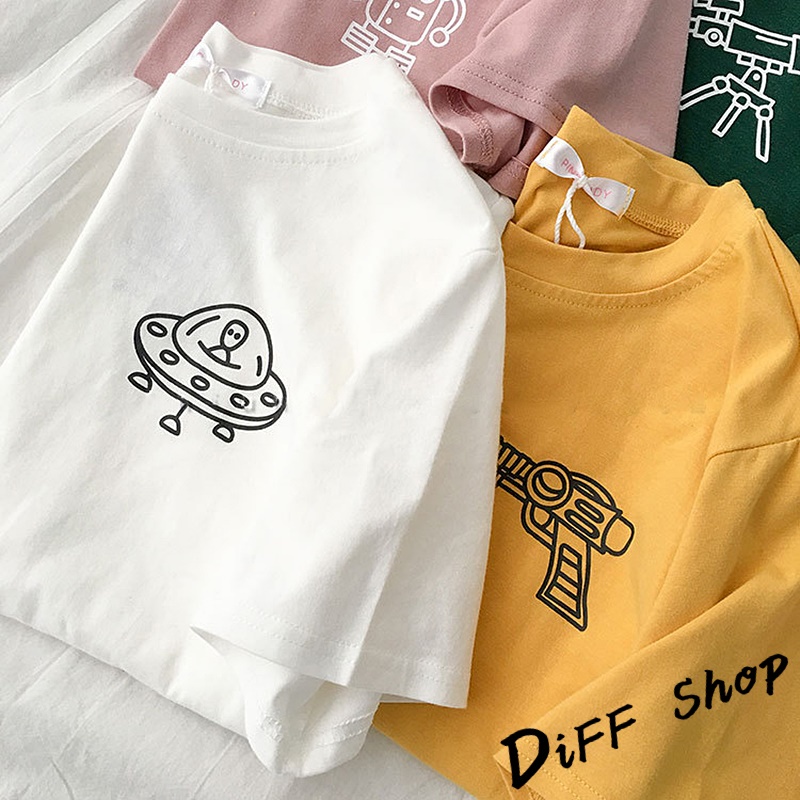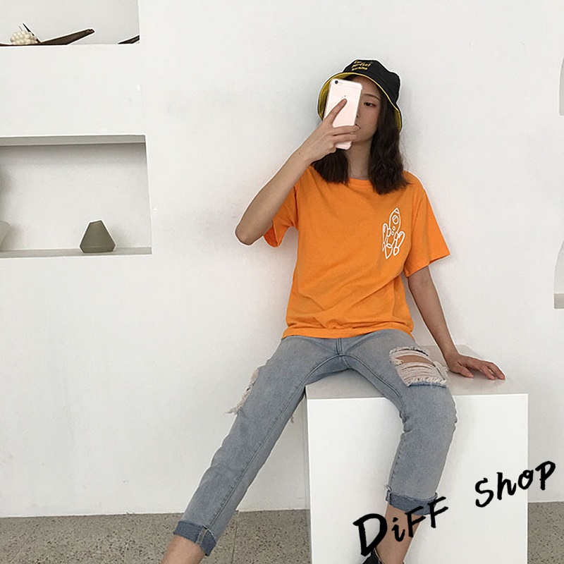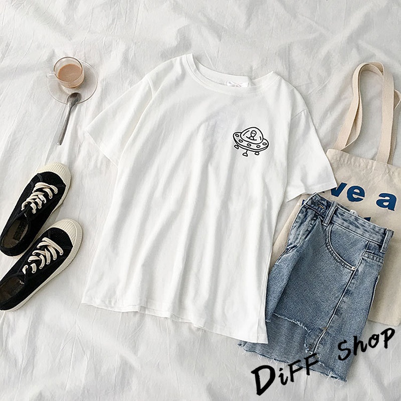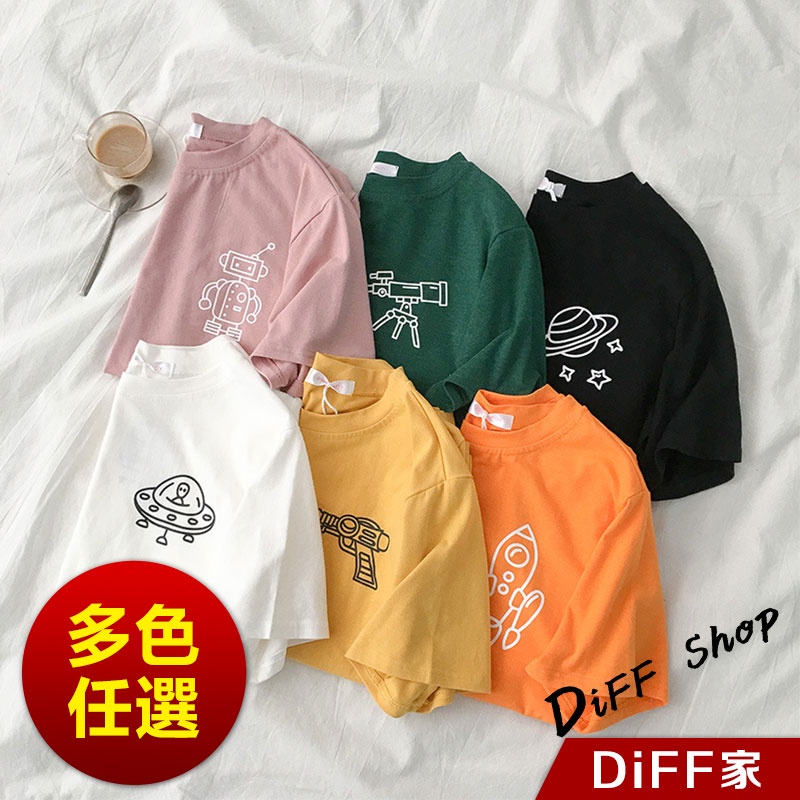 【DIFF】韓版寬鬆素色卡通外星人短袖上衣 短袖t恤 女裝 顯瘦上衣 衣服 寬鬆上衣 素T【T343】