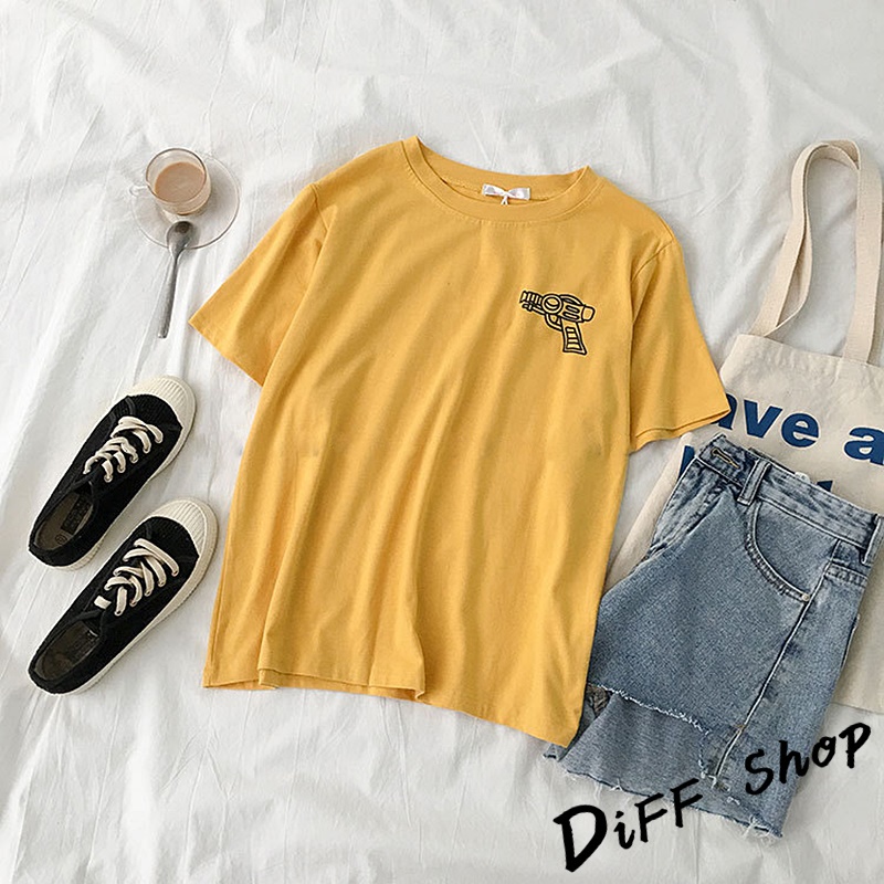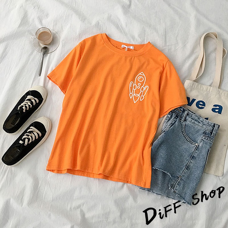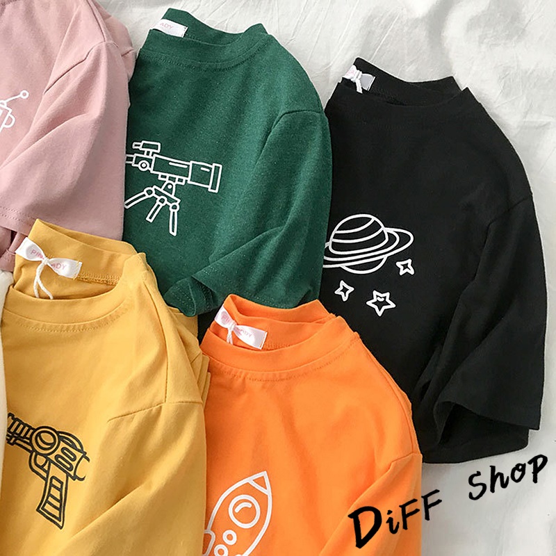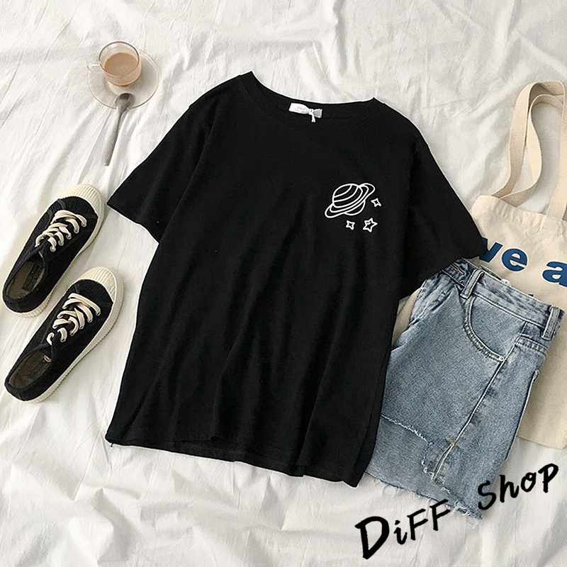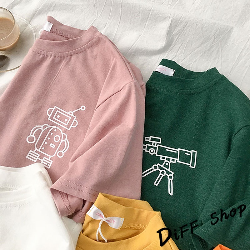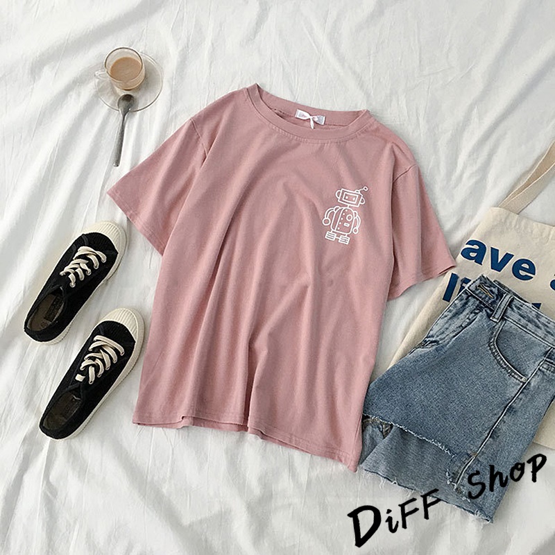 【DIFF】韓版寬鬆素色卡通外星人短袖上衣 短袖t恤 女裝 顯瘦上衣 衣服 寬鬆上衣 素T【T343】