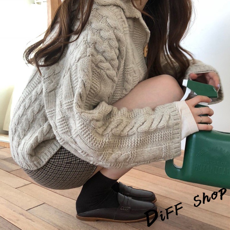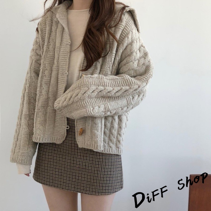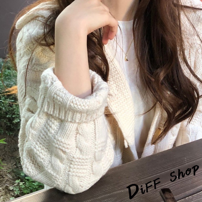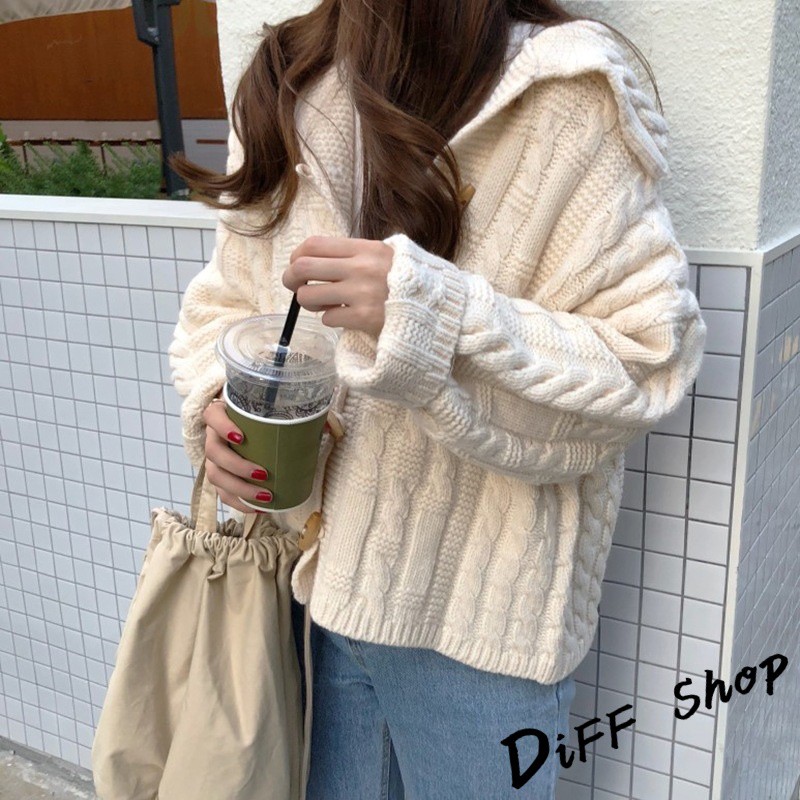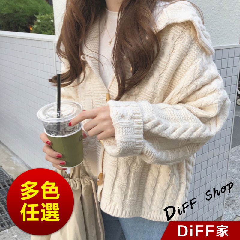 【DIFF】秋季新款韓版學院風海軍領粗毛線針織毛衣 外套 上衣 針織上衣 針織外套 長袖上衣【J93】