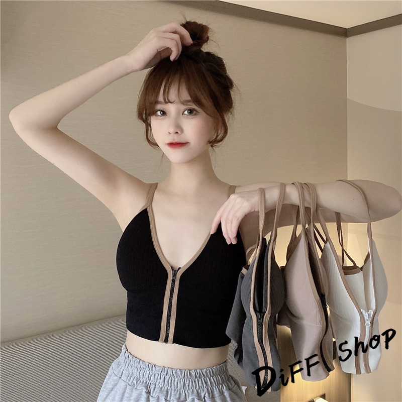 【DIFF】韓版撞色系設計感吊帶針織背心 有胸墊 免穿內衣 上衣 小可愛 女裝 背心女 衣服 冰絲背心【V135】