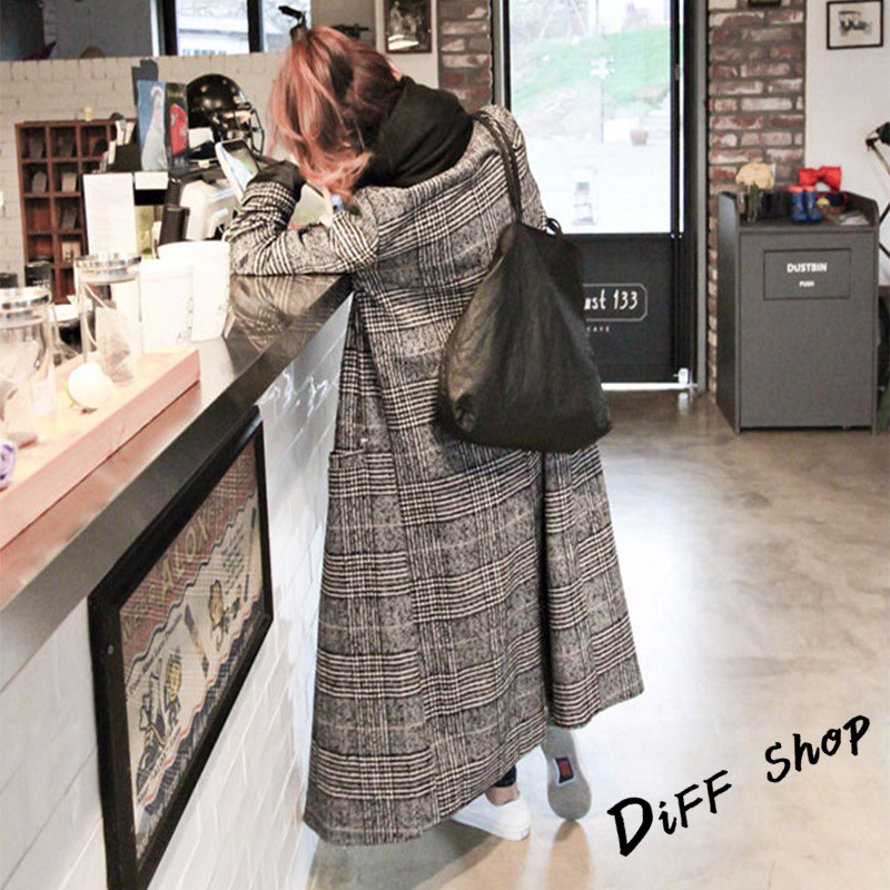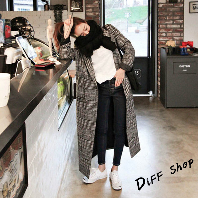 【DIFF】韓版秋冬修身顯瘦千鳥紋大衣 外套 百搭外套 上衣 女裝 衣服 西裝 風衣 大衣 長版外套 罩衫【J100】