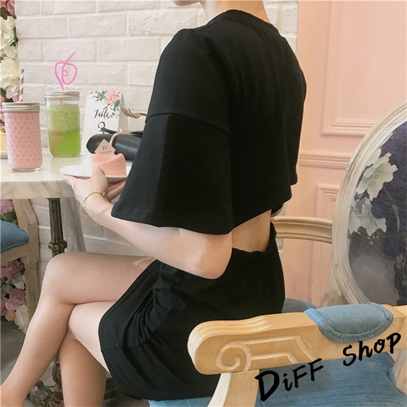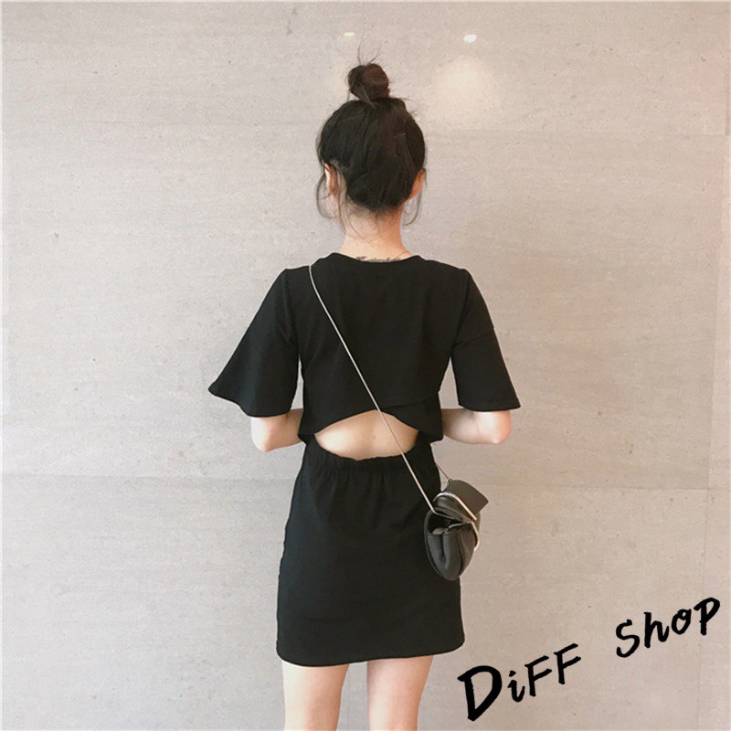 【DIFF】韓版夏季簡約小心機後背鏤空素色連衣裙 小黑裙 短袖洋裝 套裝 短袖上衣 短袖t恤 女裝 顯瘦上衣【S78】