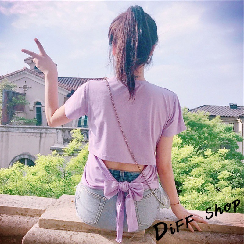 【DIFF】韓版夏季素色露背個性蝴蝶結短袖上衣 短袖t恤 女裝 顯瘦上衣 衣服 寬鬆上衣 素T【T232】