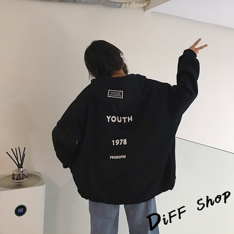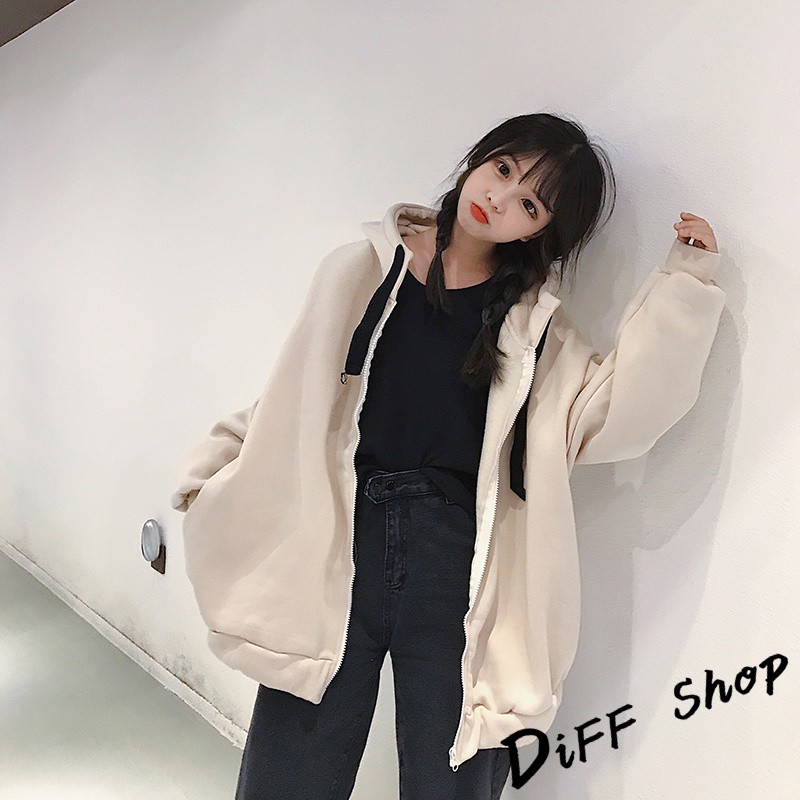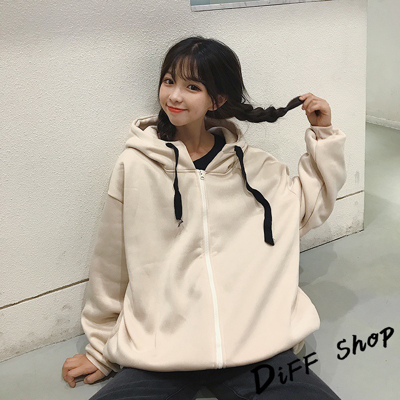 【DIFF】韓版潮字母寬鬆內刷毛連帽外套 百搭外套 上衣 女裝 衣服 外套【J146】