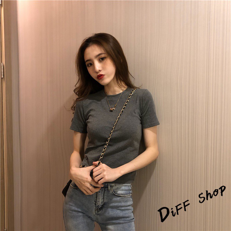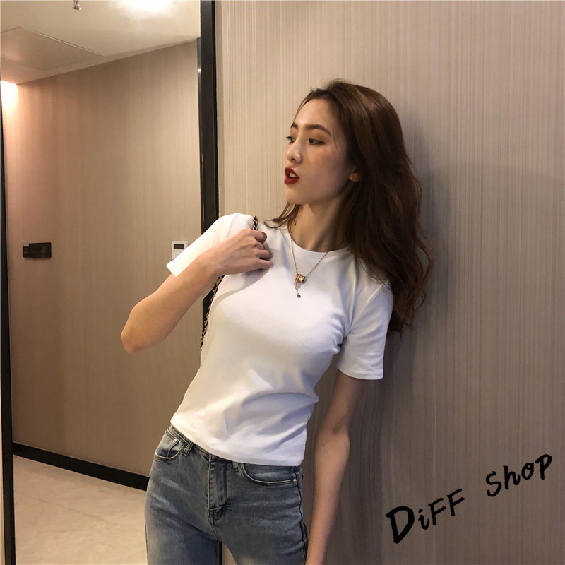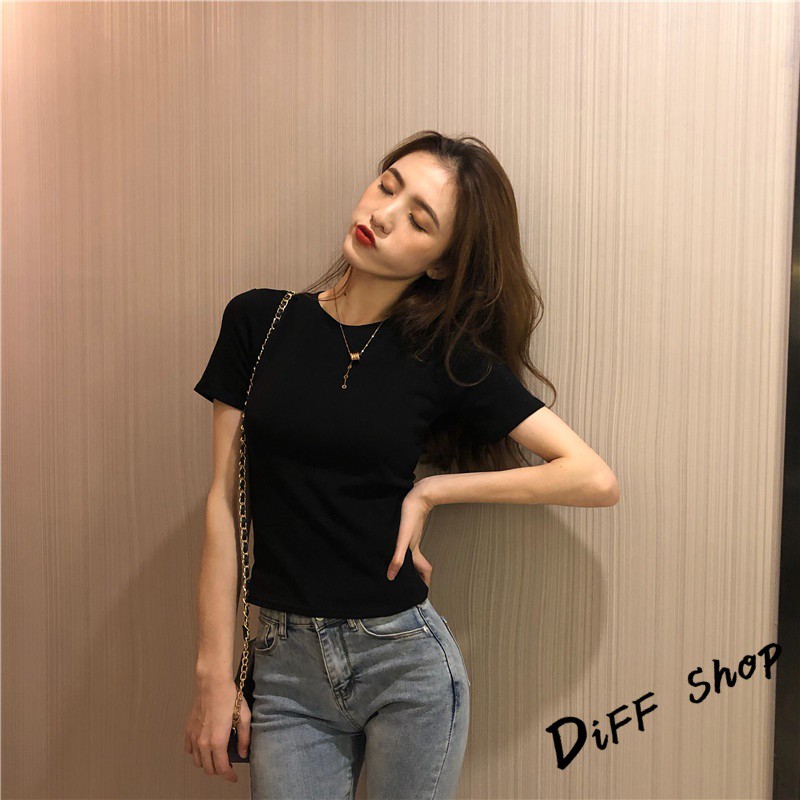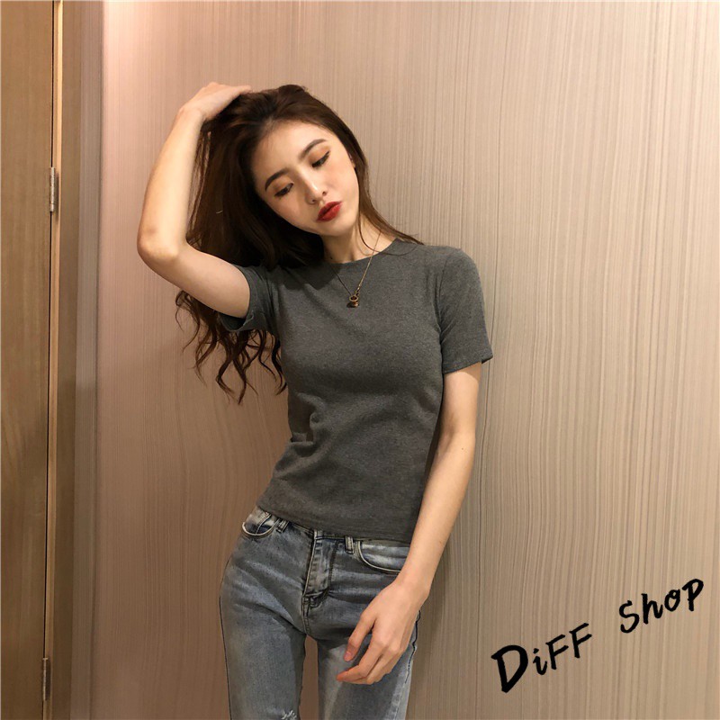 【DIFF】韓版素色圓領彈性貼身短袖上衣 短袖t恤 女裝 顯瘦上衣 衣服 素T【T217】