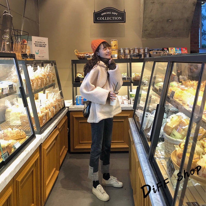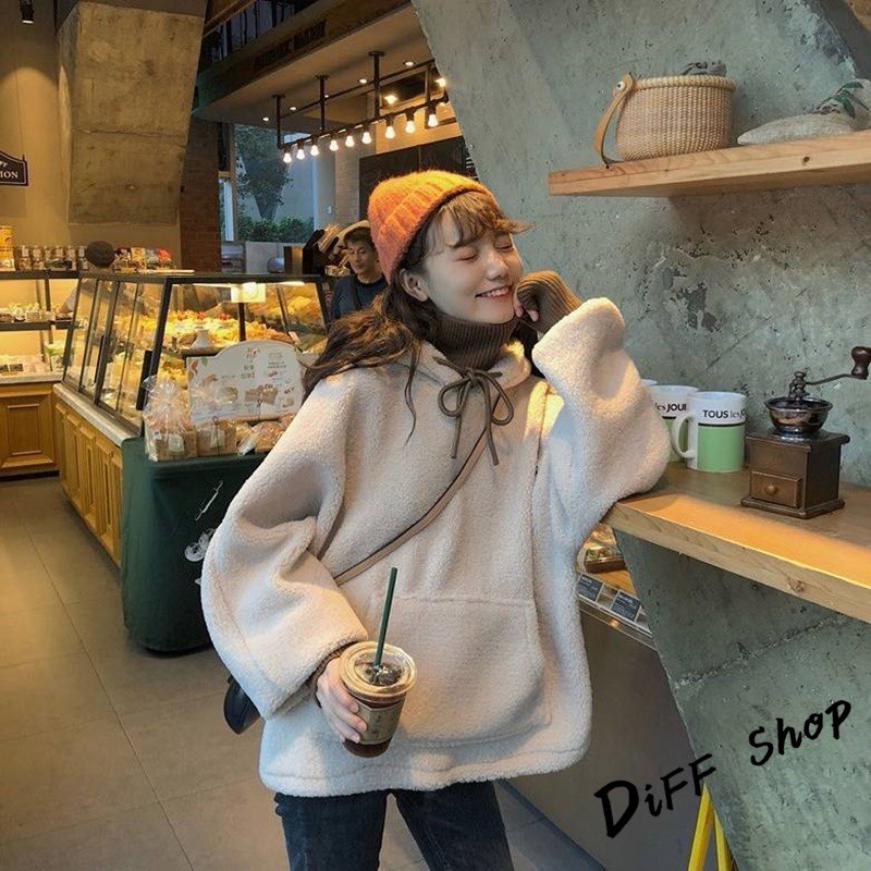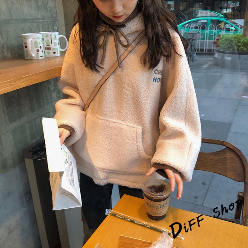 【DIFF】韓版寬鬆BF風毛茸茸連帽大學t 長袖上衣 長袖t恤 女裝 衣服 冬天女裝 保暖上衣 毛毛上衣 【W161】