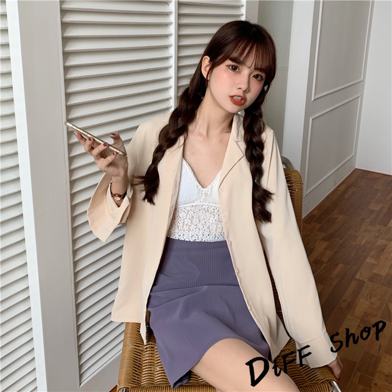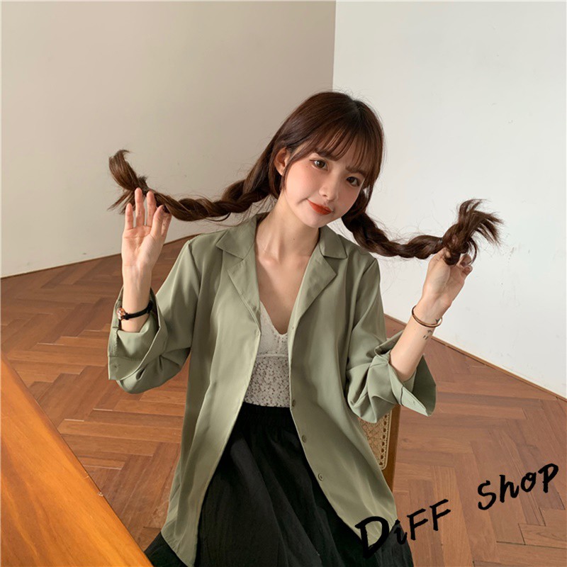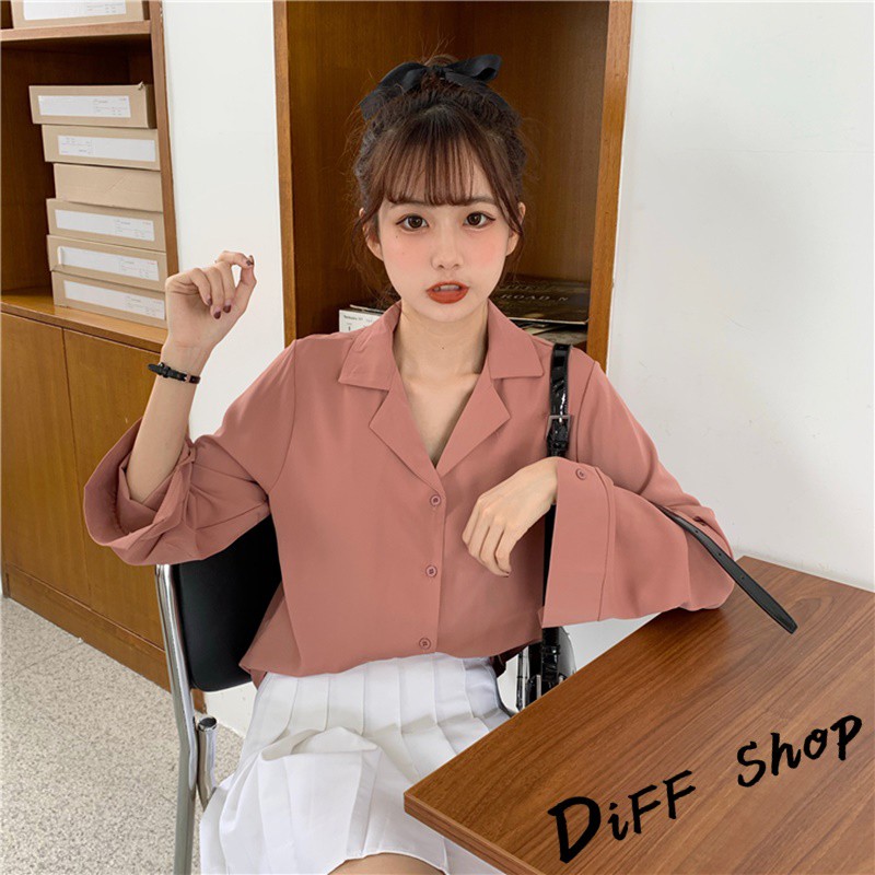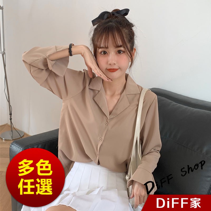 【DIFF】韓版復古色系氣質襯衫 白色襯衫 西裝領 長袖上衣 長袖t恤 女裝 衣服 寬鬆上衣 顯瘦上衣 素T【W179】