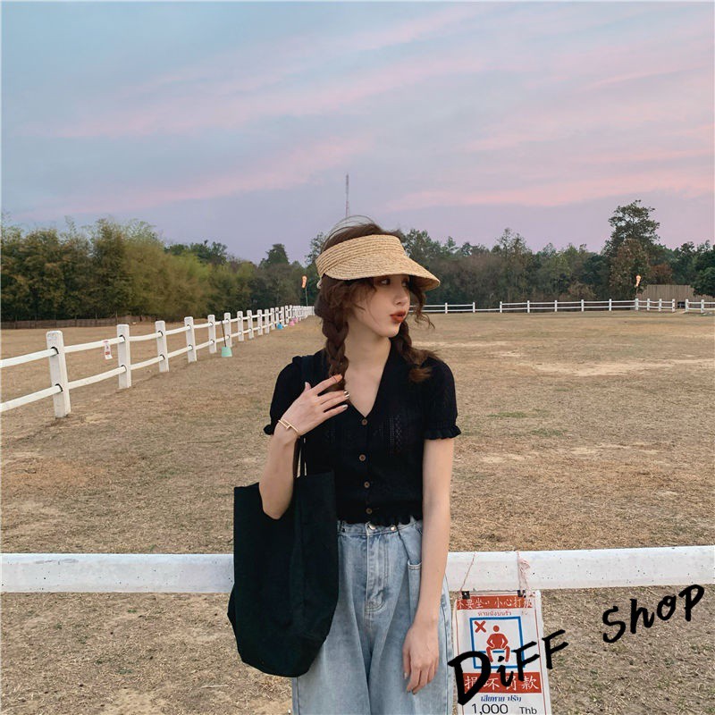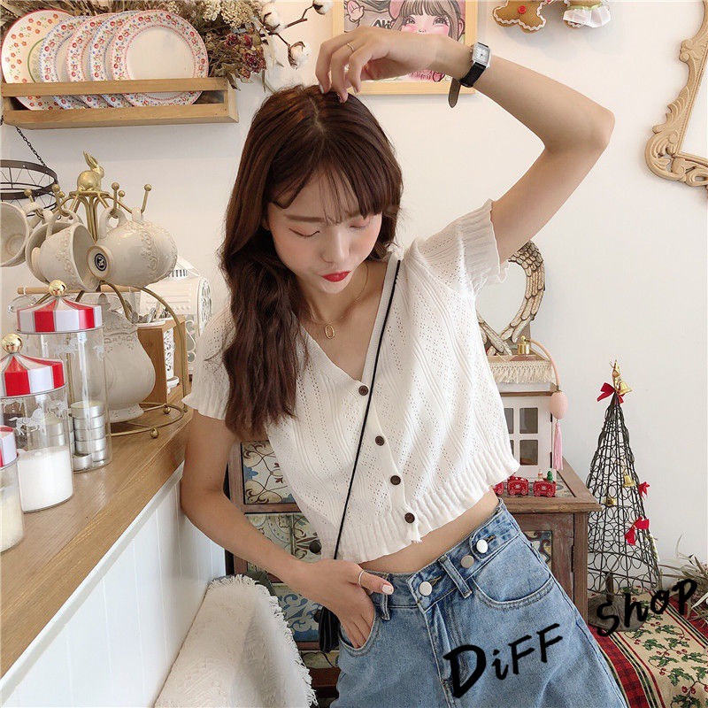 【DIFF】韓版性感寬鬆網紅冰絲鈕扣針織上衣 短袖上衣 短袖t恤 女裝 顯瘦上衣 衣服 寬鬆上衣【T235】