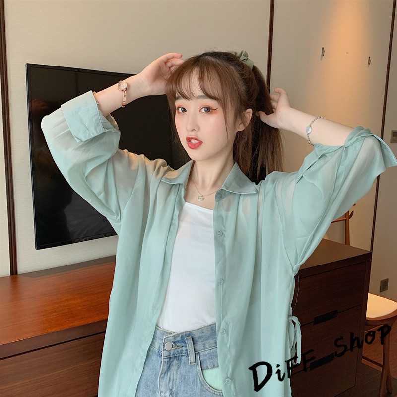 【DIFF】韓版糖果色系寬鬆開叉綁帶透明防曬外套 百搭外套 上衣 女裝 衣服 外套 薄外套 罩衫【J126】