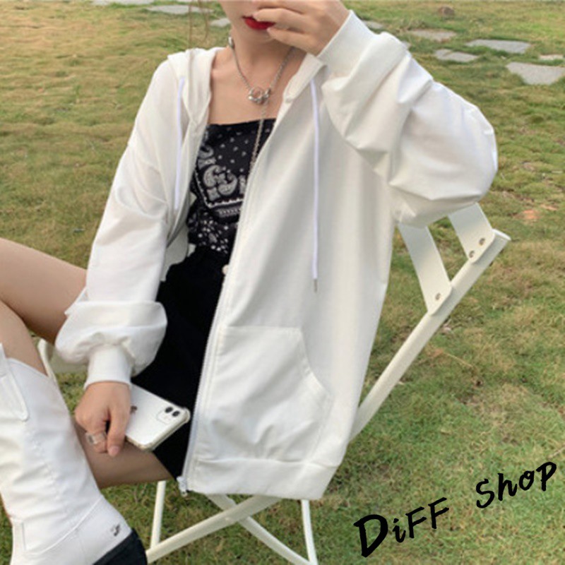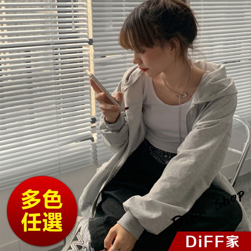 【DIFF】韓版寬鬆百搭素色連帽薄外套 運動外套 上衣 女裝 衣服 外套 薄外套 罩衫 防曬外套 連帽外套【J152】