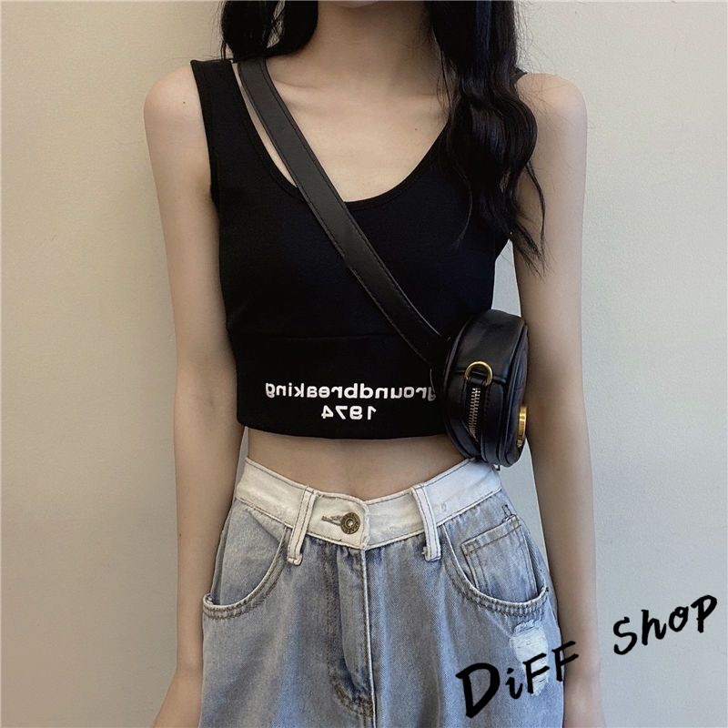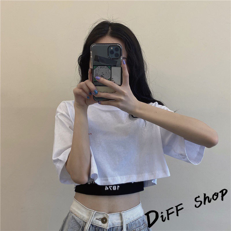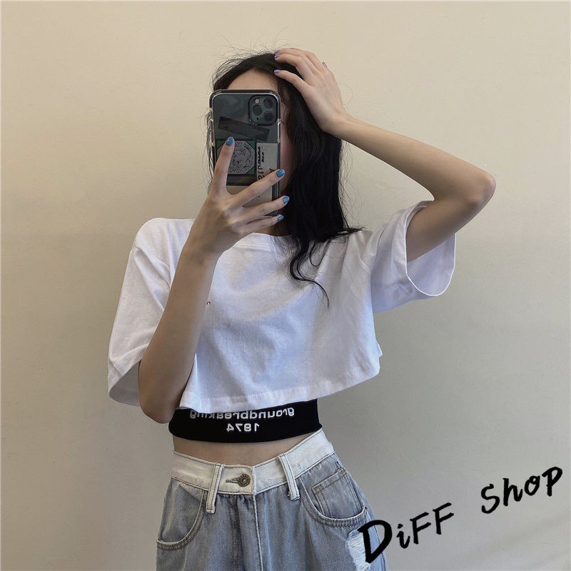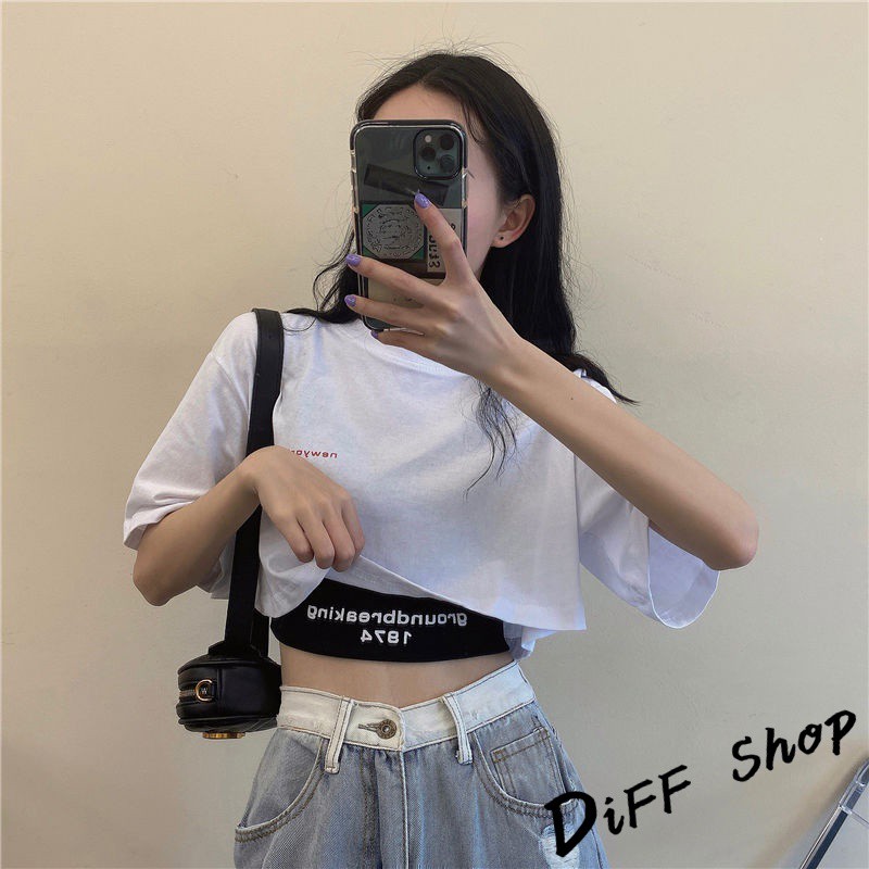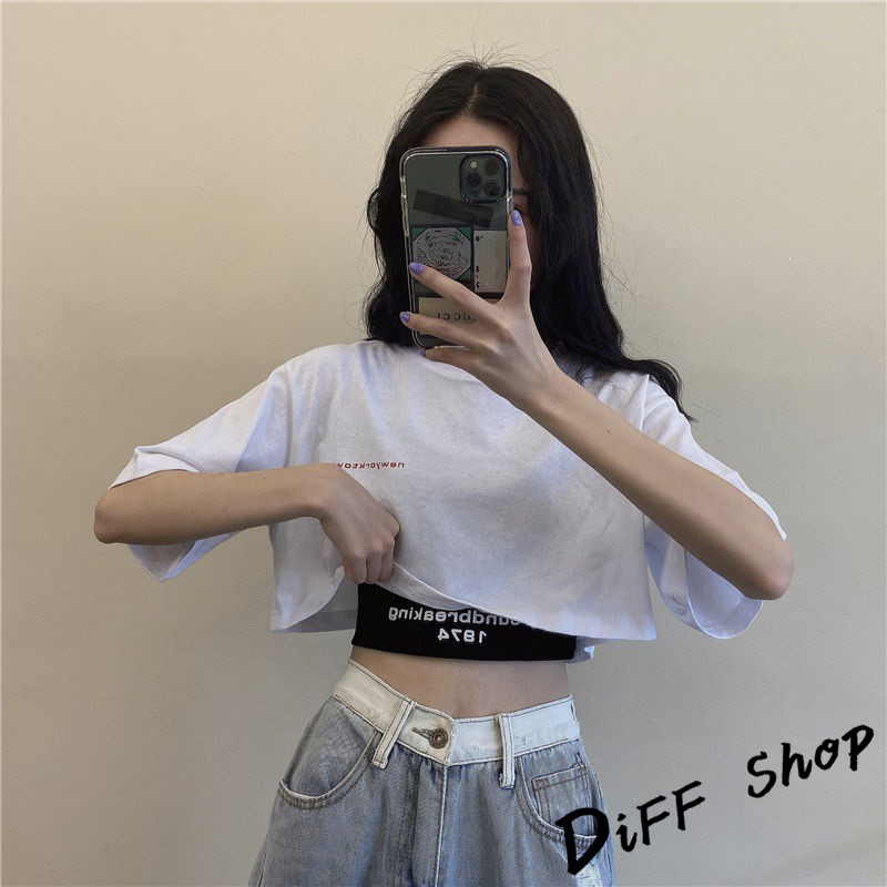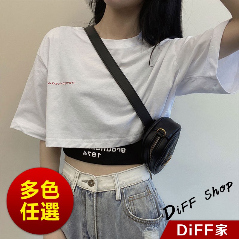 【DIFF】韓版網紅高腰寬鬆短版上衣+黑色背心 短袖上衣 短袖t恤 女裝 顯瘦上衣 衣服 寬鬆上衣 素T【S81】