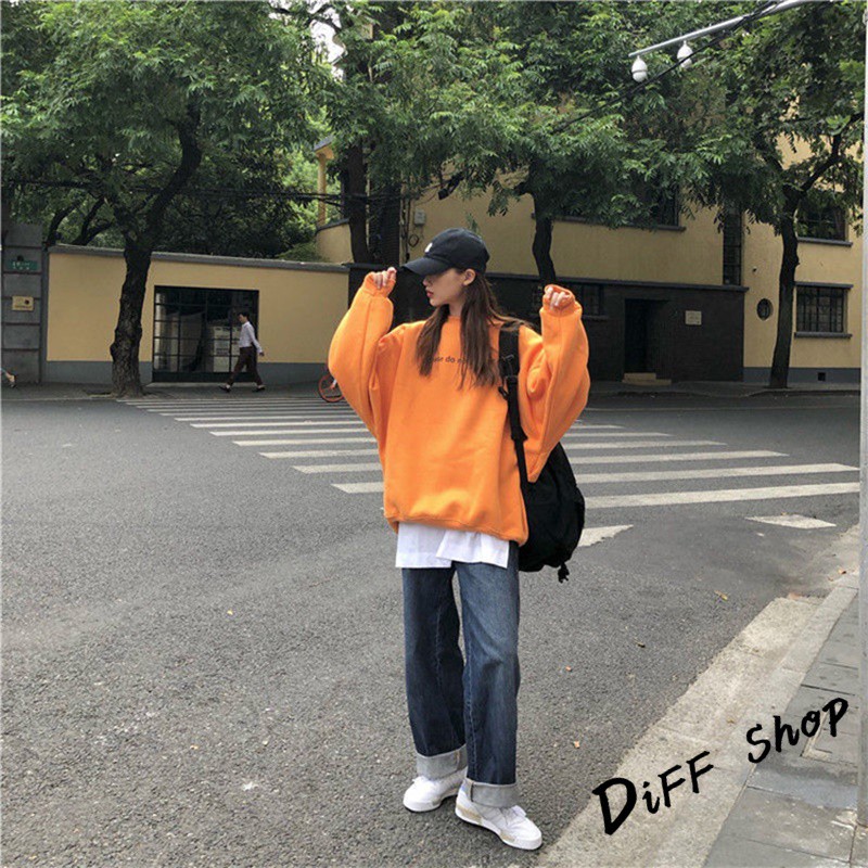 【DIFF】韓版復古寬鬆內刷毛個性長袖上衣 連衣裙 衣服 寬鬆上衣 顯瘦上衣 素色 冬裝 長袖t恤 大學T【S89】