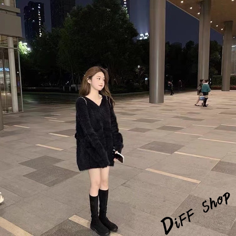 【DIFF】韓版溫柔甜美小仙女毛毛長袖上衣 毛衣 連衣裙 女裝 衣服 寬鬆上衣 顯瘦上衣 冬裝 長袖t恤【W246】
