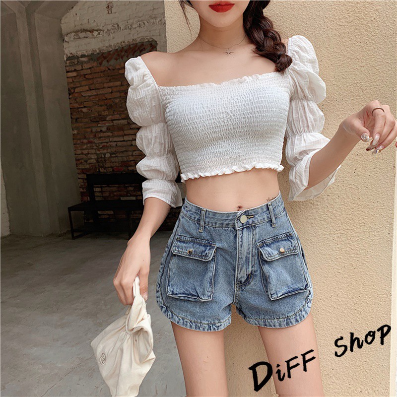 【DIFF】韓版高腰顯瘦修身工裝風牛仔短褲 牛仔真理褲 褲子 運動短褲 女裝 休閒短褲 工作褲 工裝褲【P147】