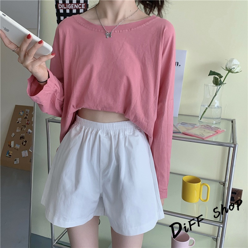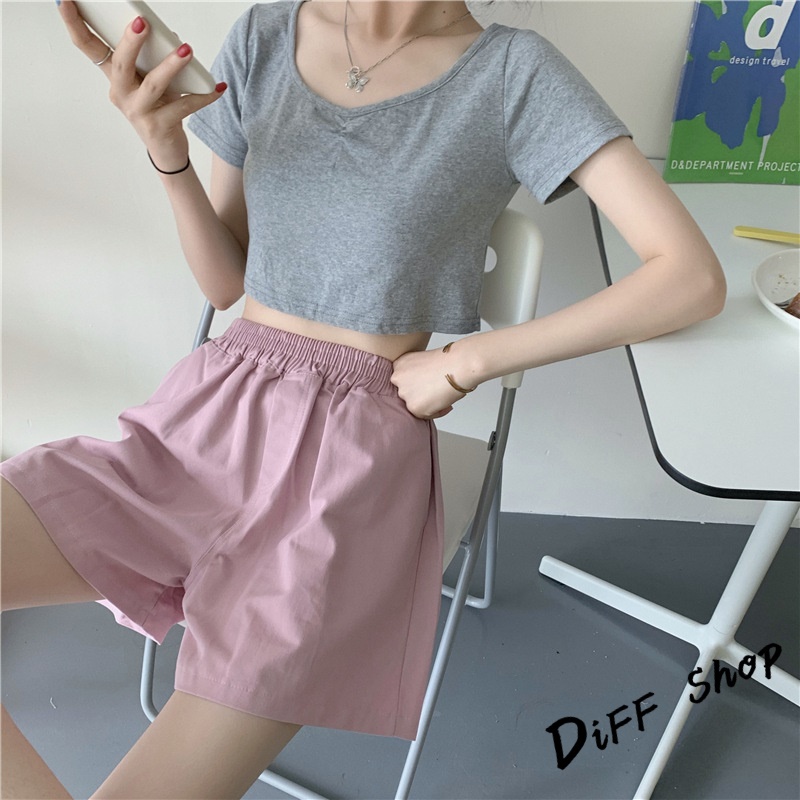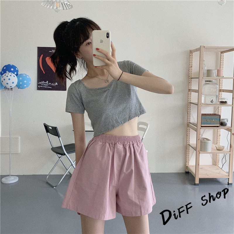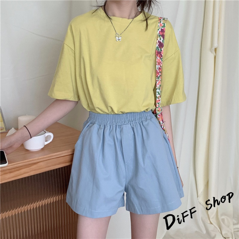 【DIFF】韓版小鬆緊腰A字高腰休閒褲 短褲 褲子 運動短褲 女裝 休閒短褲 寬褲 運動褲【P168】