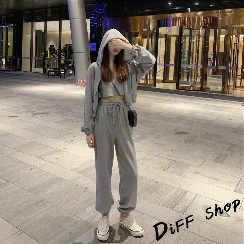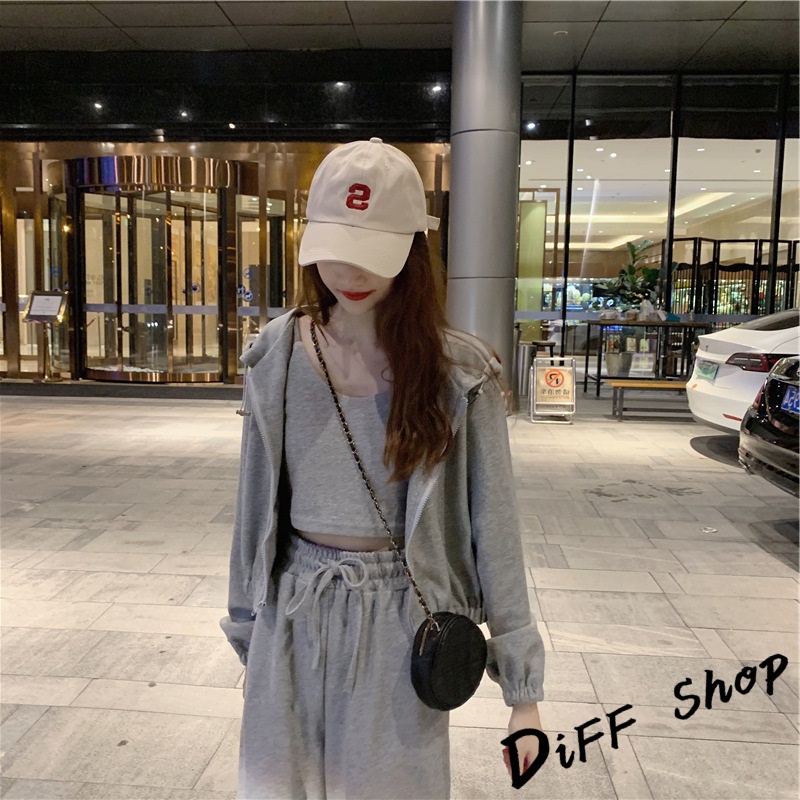 【DIFF】韓版氣質女神範休閒運動三件套裝 外套+背心+長褲 運動褲 褲子 上衣 衣服 女裝 短版背心【S128】