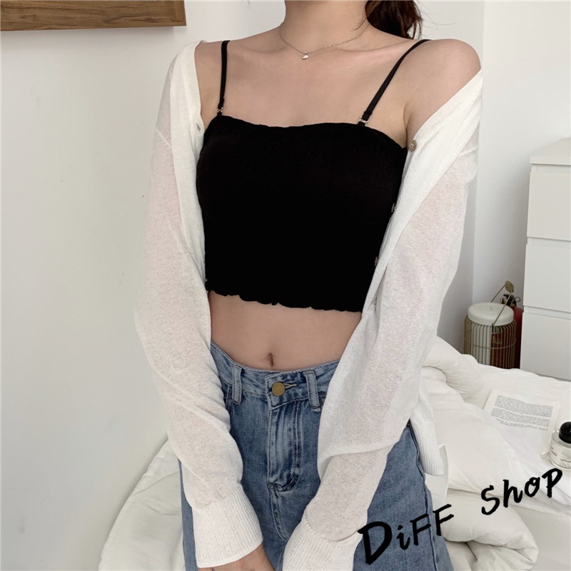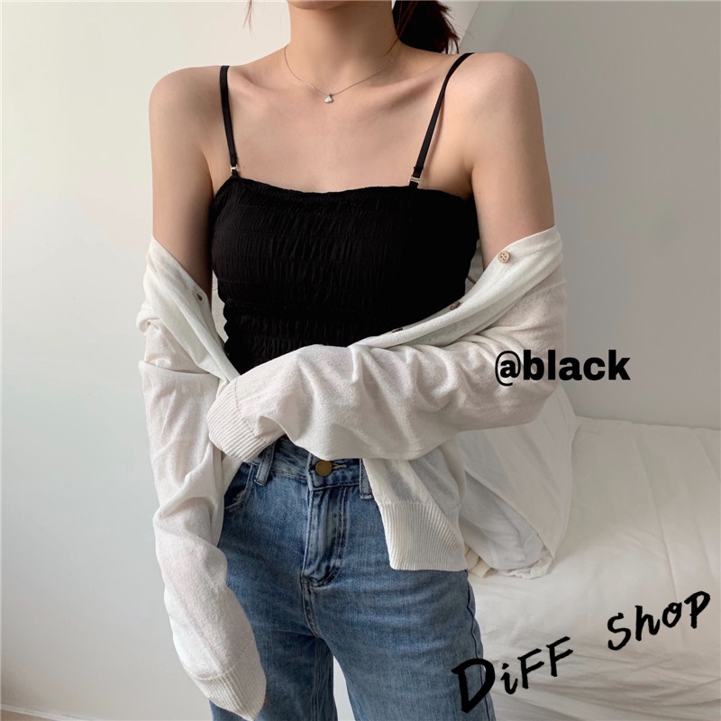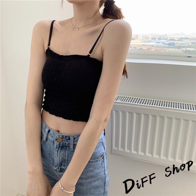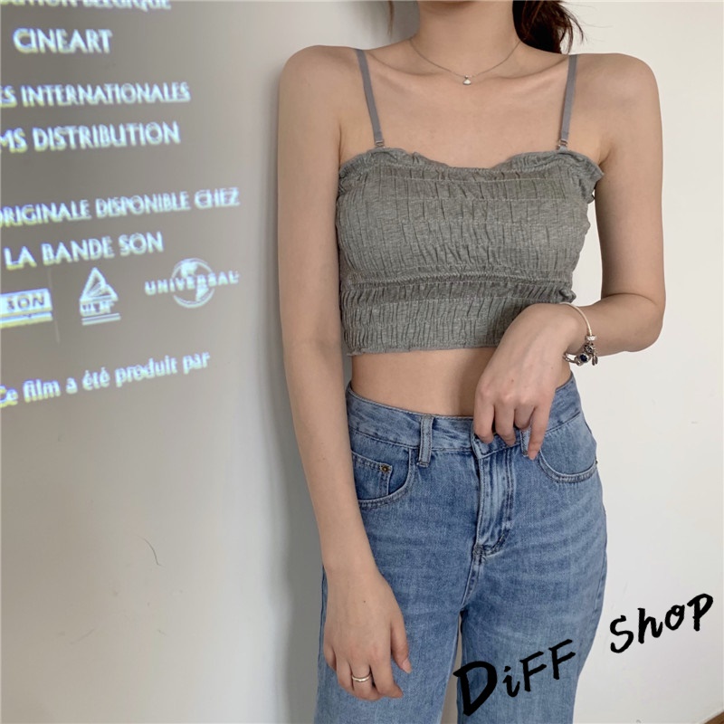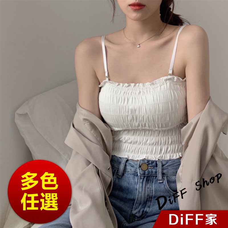 【DIFF】韓版百搭顯瘦皺褶短版背心 免穿內衣帶胸墊 上衣 小可愛 女裝 背心女 衣服 冰絲背心 短版上衣【V103】