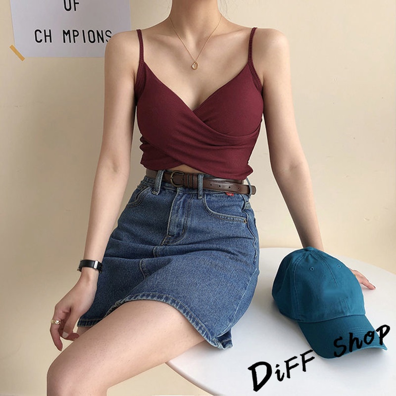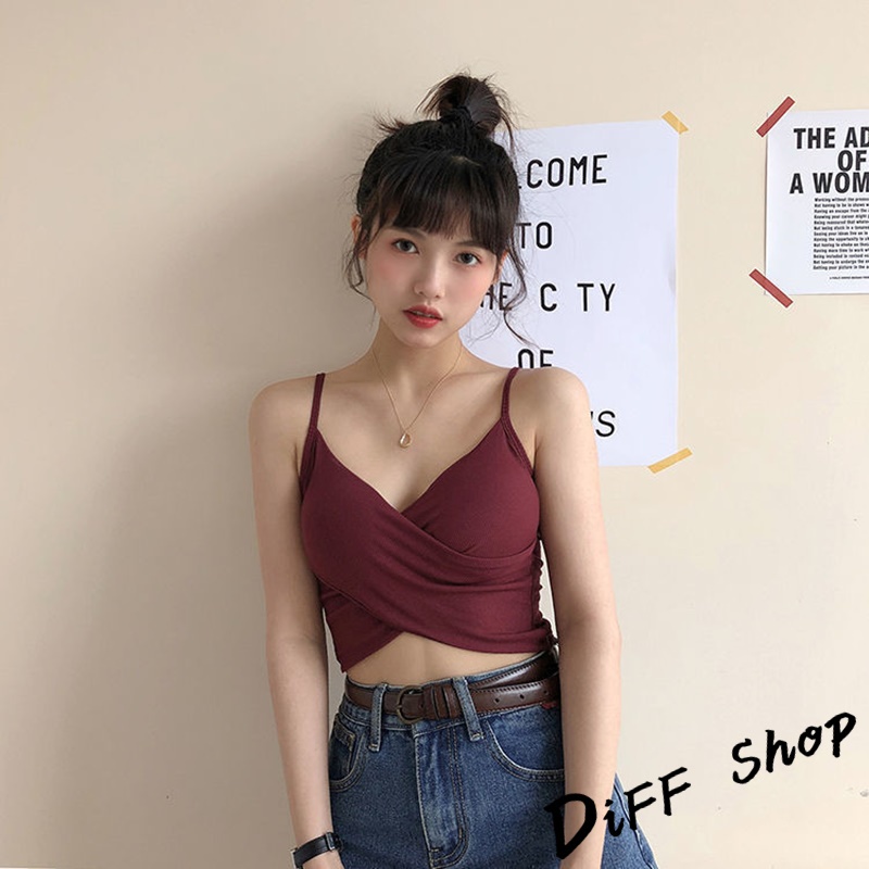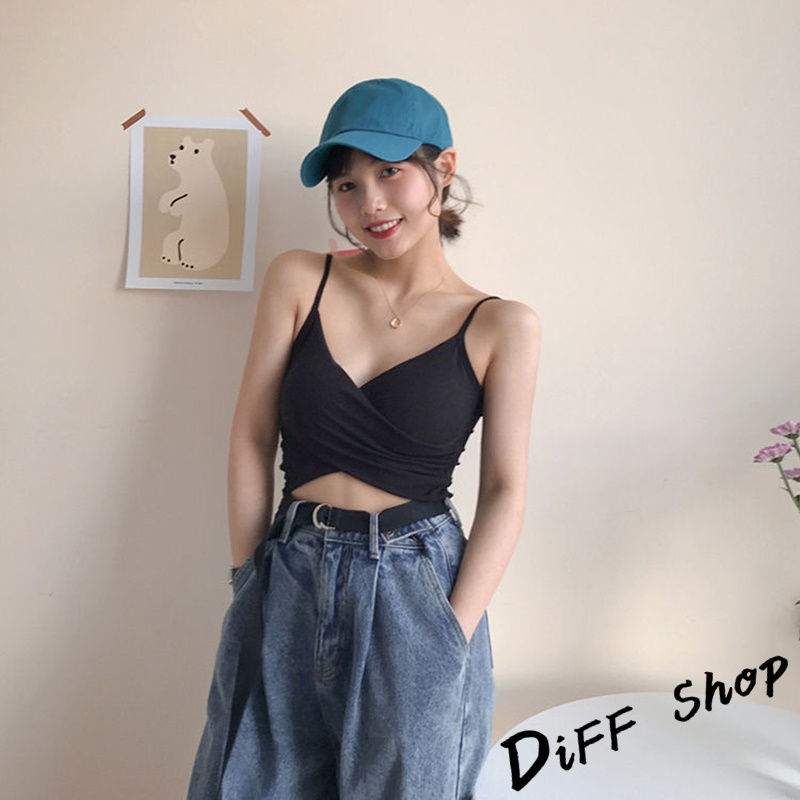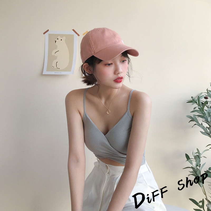 【DIFF】韓版微辣交叉扭結細肩bra背心 免穿內衣帶胸墊 小可愛 上衣 背心 女裝 衣服 短版上衣 短板【V129】