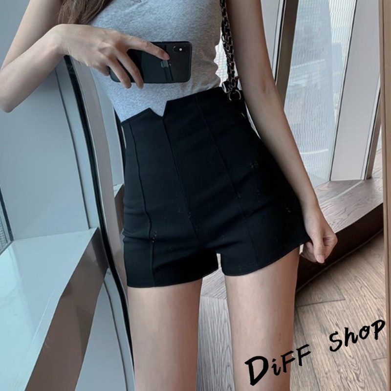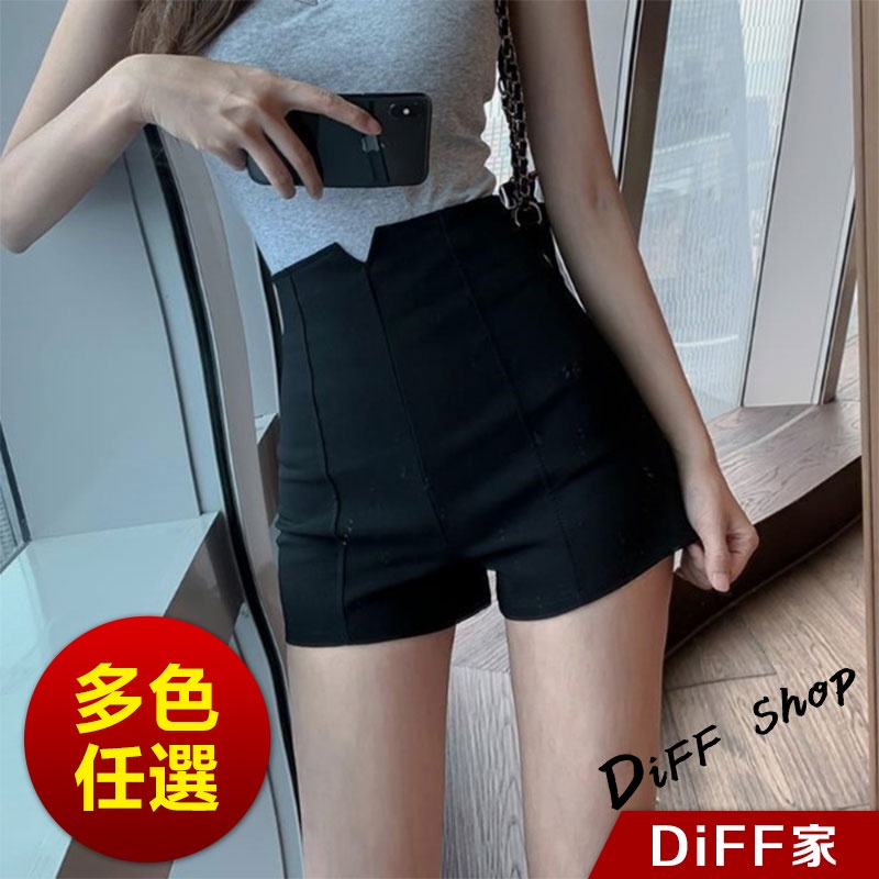 【DIFF】韓版顯瘦高腰顯腿長黑色短褲 休閒褲 短褲 褲子 運動短褲 女裝 休閒短褲 運動褲【P121】