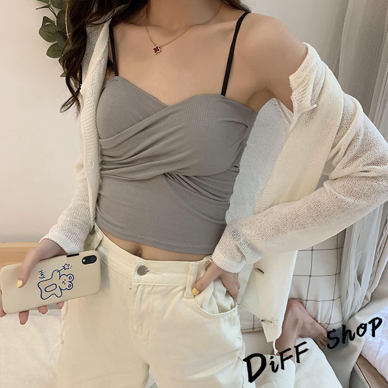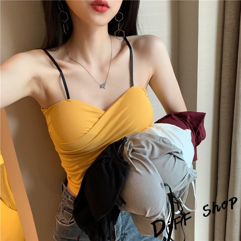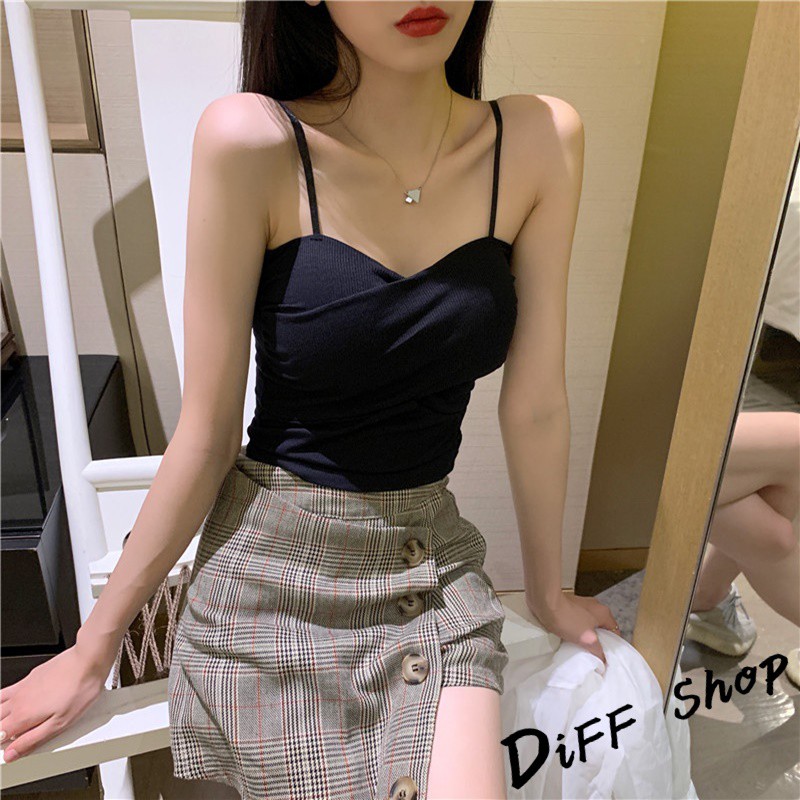 【DIFF】韓版百搭設計感交叉褶皺吊帶背心 免穿內衣 上衣 小可愛 女裝 百搭素色 必備款 衣服【V128】