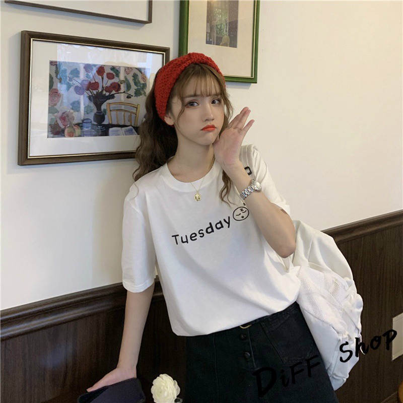 【DIFF】韓版寬鬆星期字母刺繡短袖上衣 短袖t恤 女裝 顯瘦上衣 衣服 寬鬆上衣 素T【T286】