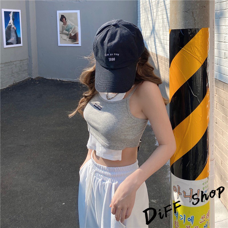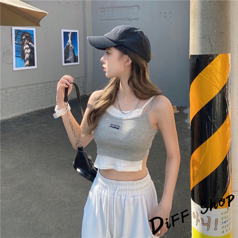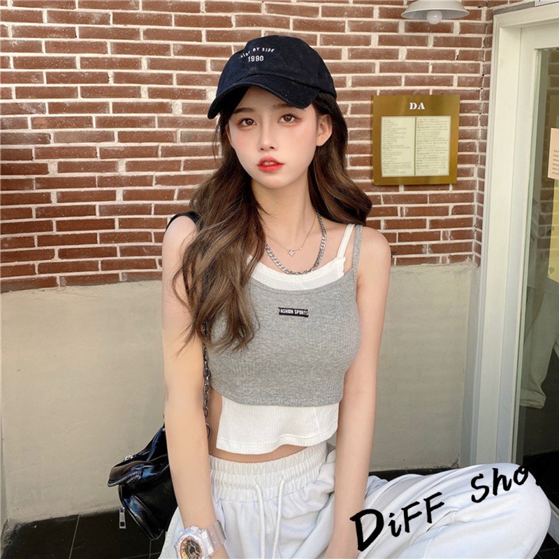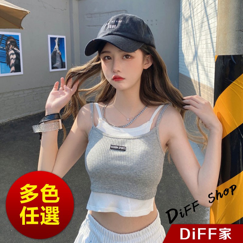 【DIFF】韓版運動風假兩件背心 帶胸墊 上衣 小可愛 女裝 背心女 衣服 冰絲背心 短板上衣 短版上衣【V131】