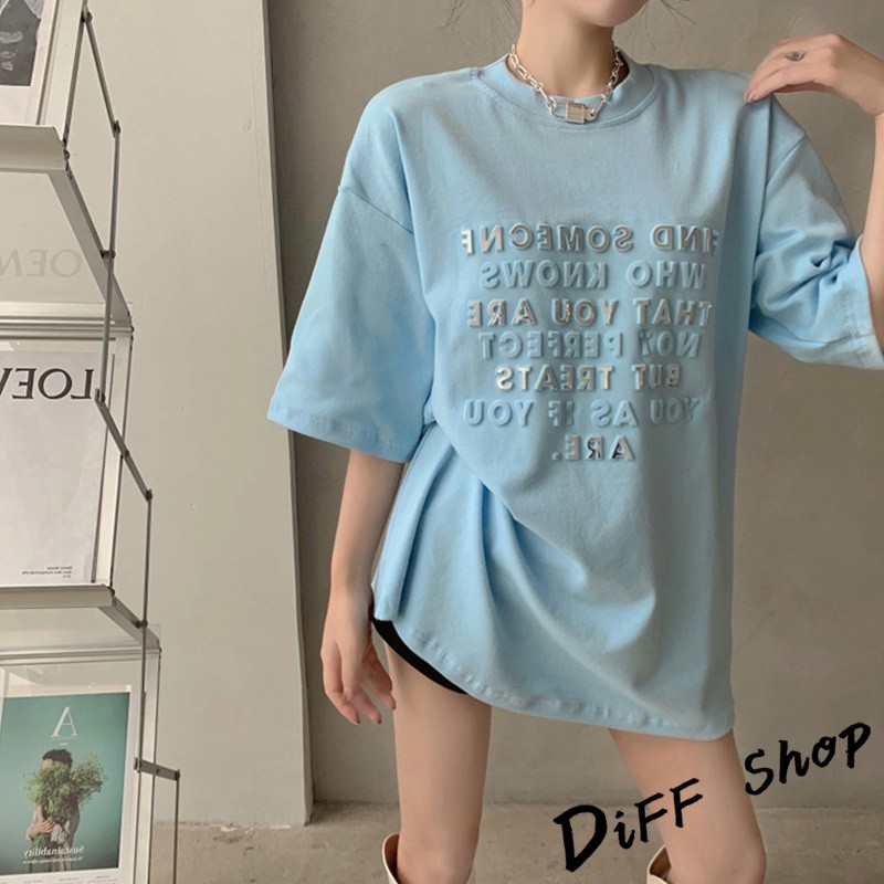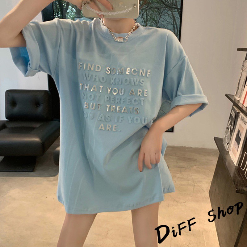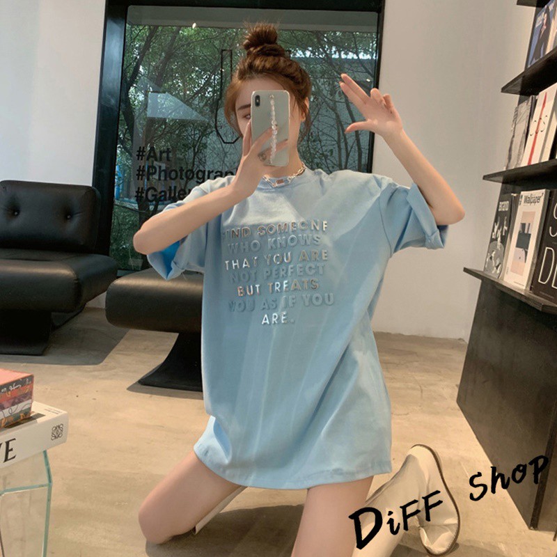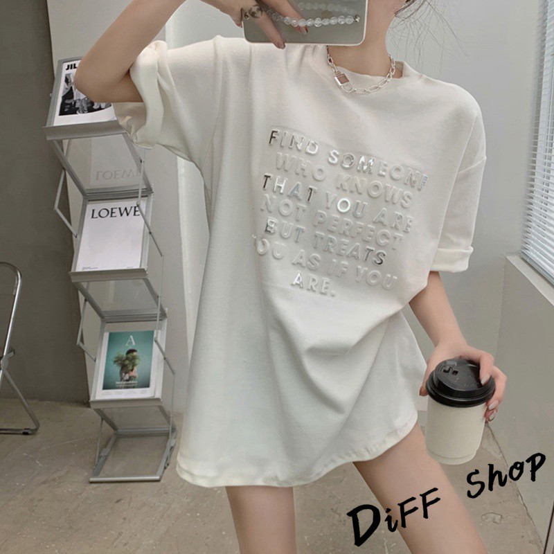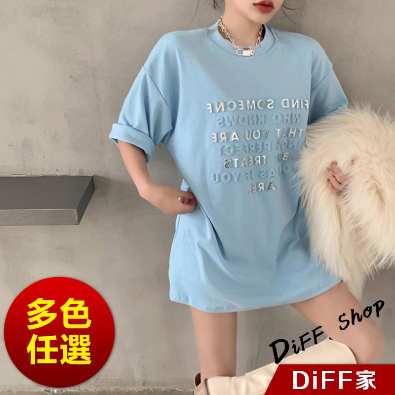 【DIFF】韓版寬鬆百搭字母長版上衣 下半身失蹤 短袖上衣 短袖t恤 女裝 顯瘦上衣 衣服 寬鬆上衣 連衣裙【T304】