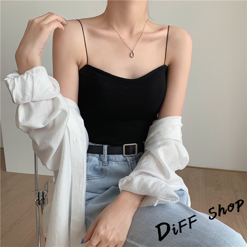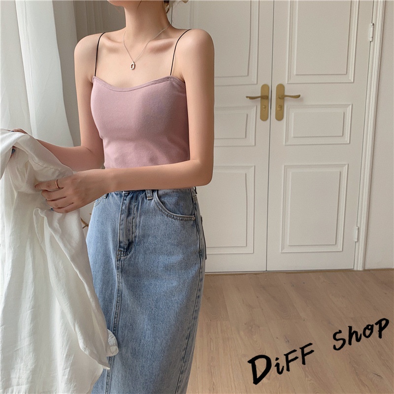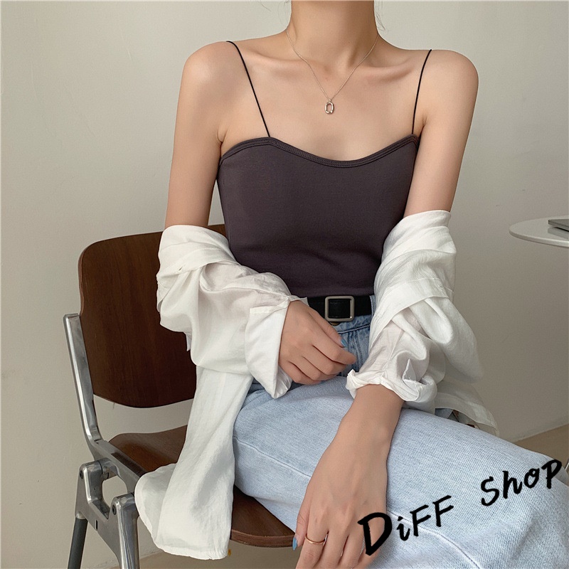 【DIFF】韓版細肩美背小可愛 帶胸墊免穿內衣 上衣 小可愛 女裝 背心女 衣服 短版上衣 冰絲背心【V117】