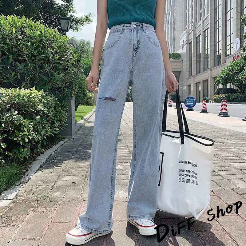 【DIFF】韓版高腰直筒墜感刷破寬鬆牛仔褲 寬褲 落地褲 拖地褲 褲子 長褲 休閒褲 女裝 工裝褲 牛仔長褲【P153】