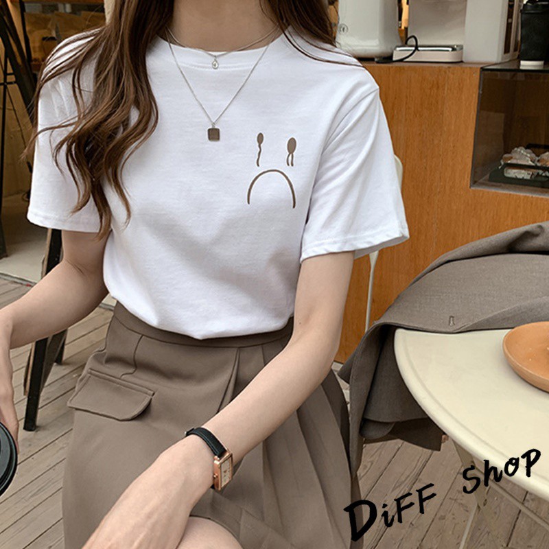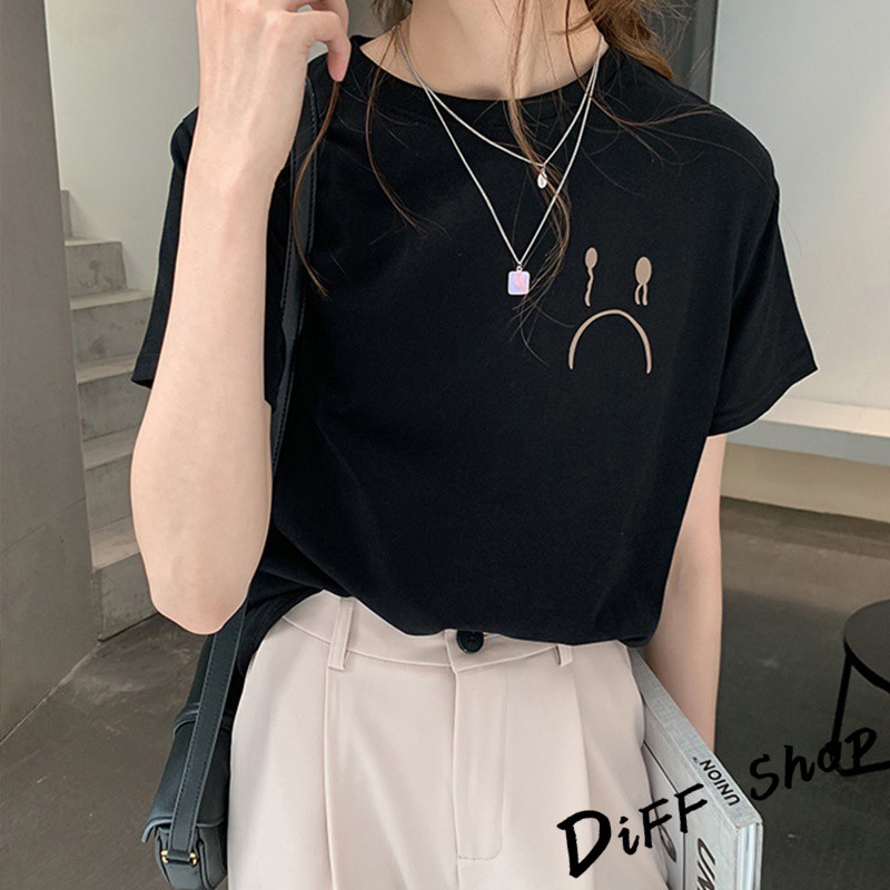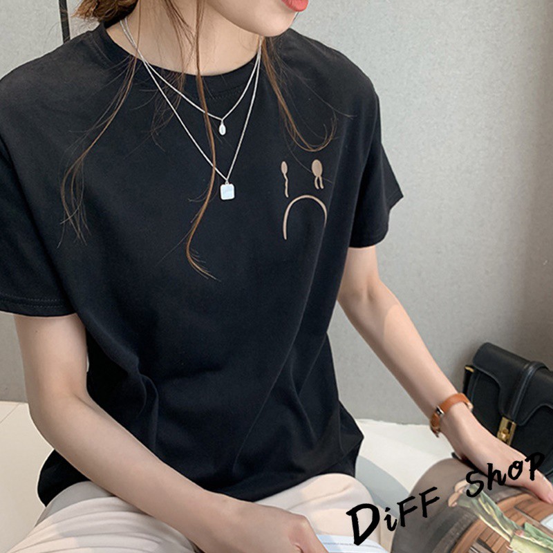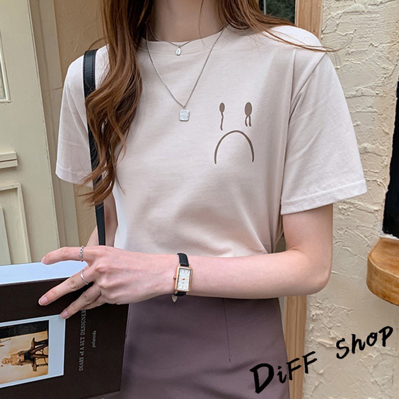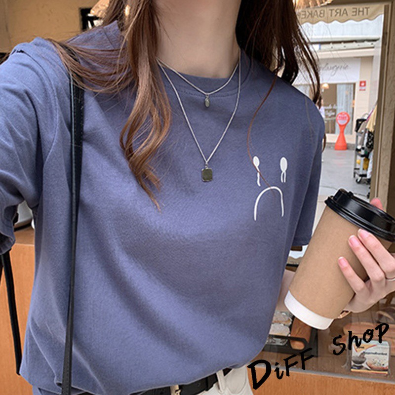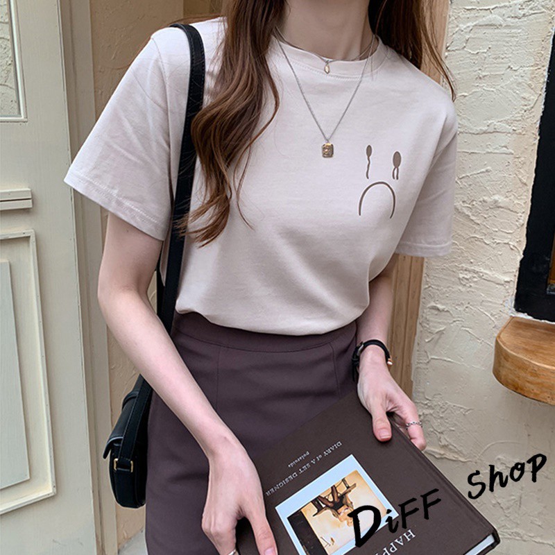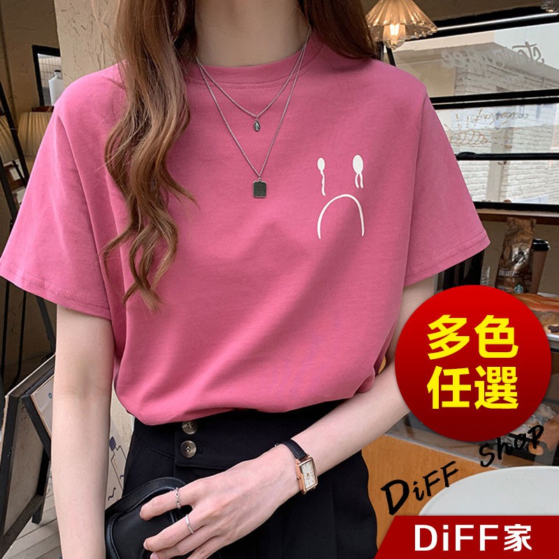【DIFF】韓版百搭圓領寬鬆表情短袖上衣 短袖t恤 女裝 顯瘦上衣 衣服 寬鬆上衣 素T【T287】