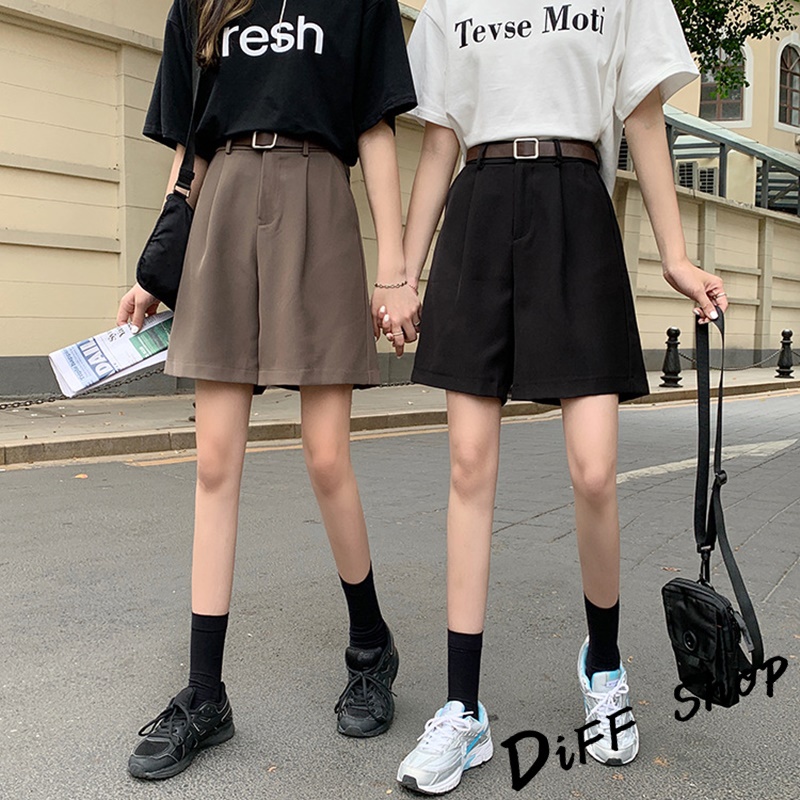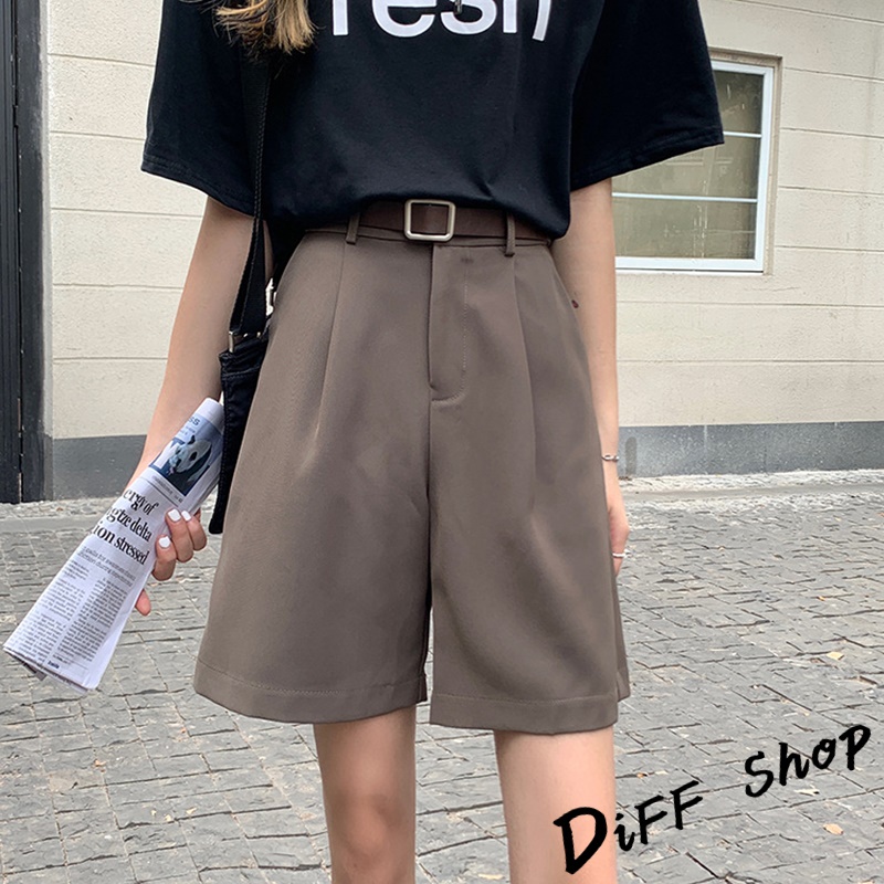 【DIFF】韓版清新小個子西裝短褲 附皮帶 五分褲 工作褲 休閒褲 短褲 褲子 女裝 休閒短褲 寬褲【P163】